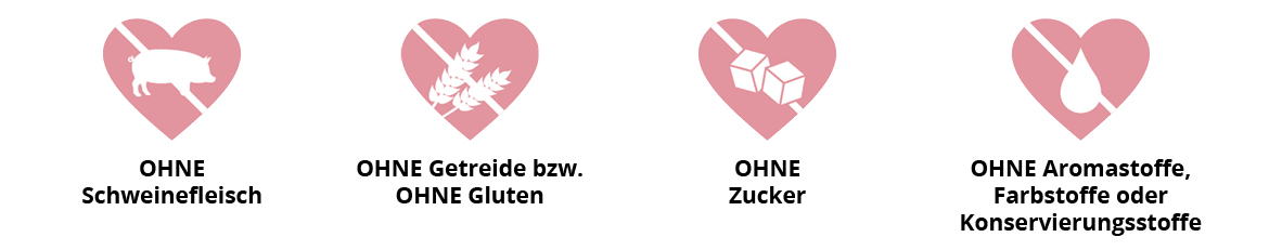 Ganz ohne Farb-, Aroma- oder Konservierungsstoffe und selbstverständlich ohne Zusatz von Zucker oder Schweinefleisch.