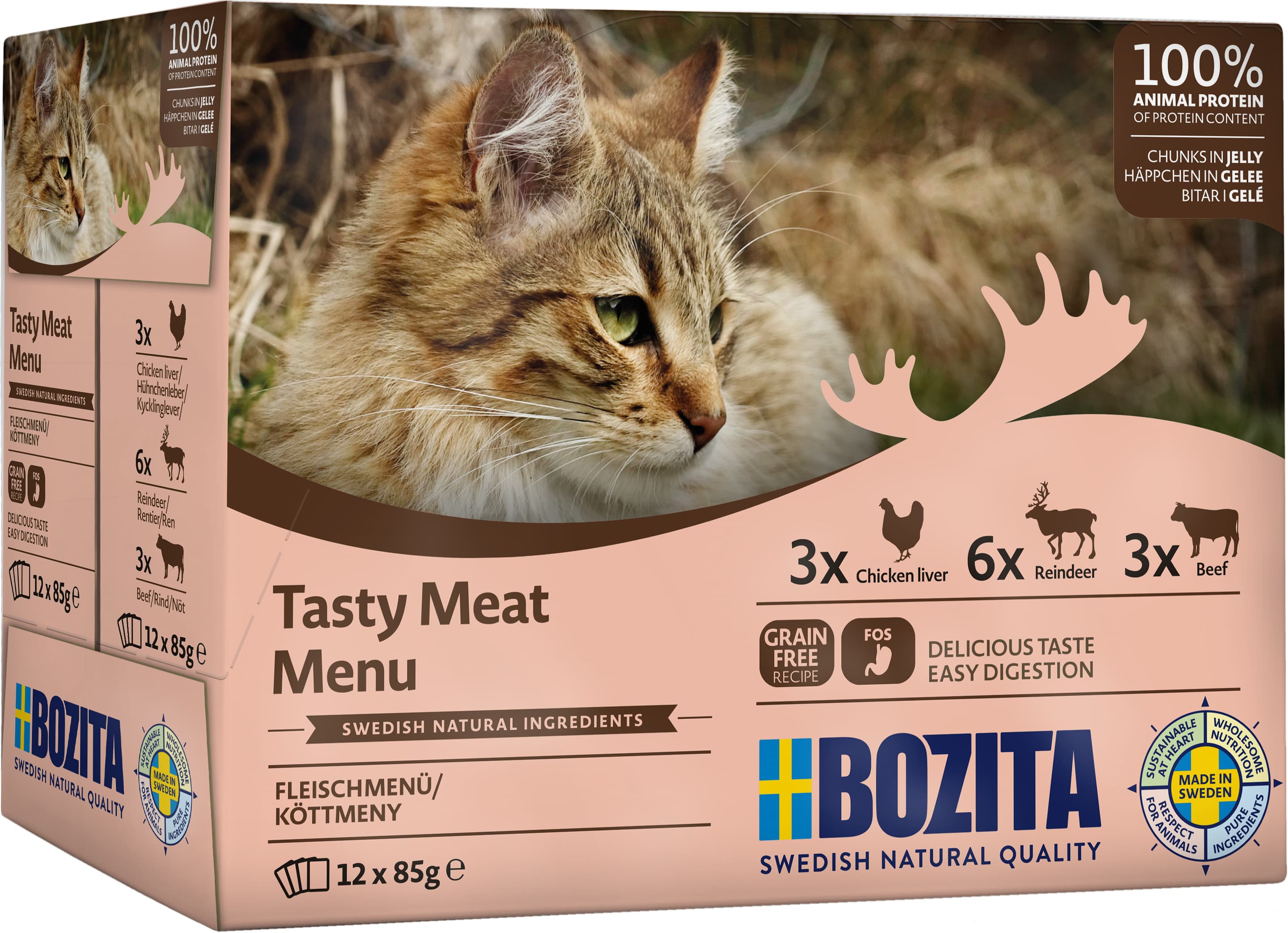 MultipackBOZITA Katzennassfutter Pouch Häppchen in Gelee mit Rentier1,16 € / 85 g13,65 € / 1 kgOnline verfügbarIn die Filiale lieferbar