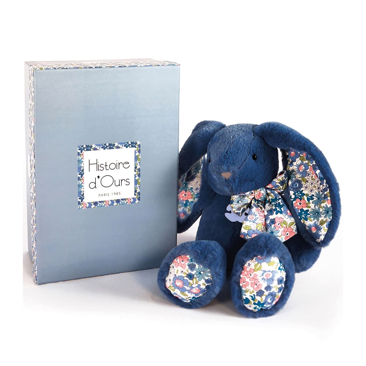 DOUDOU - Bonbon Hase Füsslinge mit Rassel, blau 0-6M