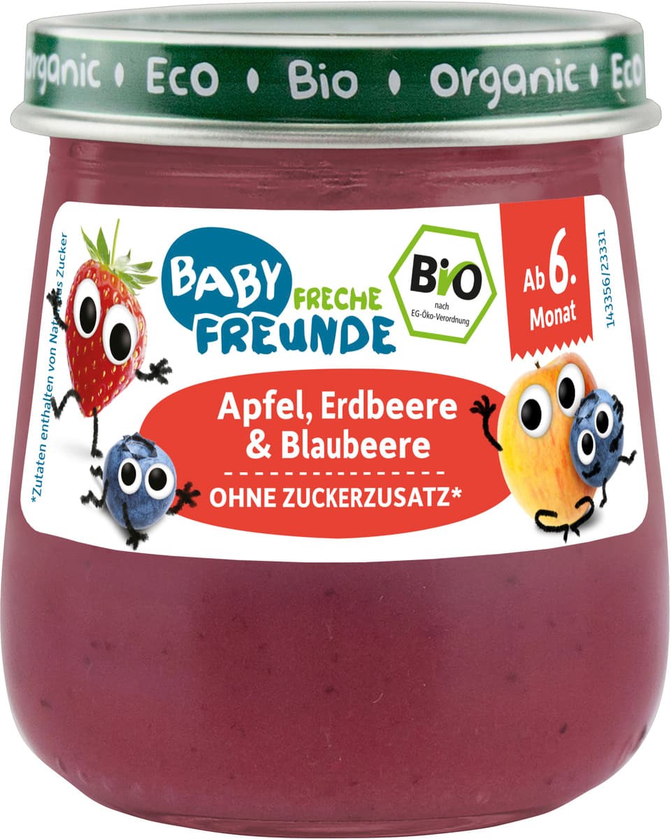 Freche Freunde Bio Gläschen Abendbrei Apfel, Blaubeere mit Hafer