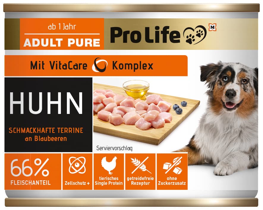 Pro Life Hundenassfutter - Terrine mit Huhn an kaltgepresstem Distelöl