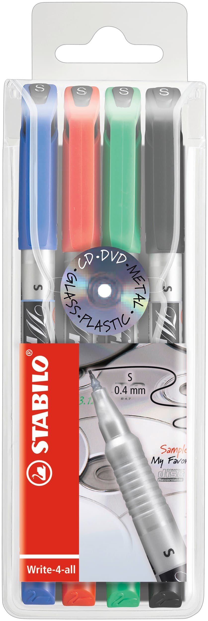 STABILO® Druck-Kugelschreiber - STABILO pointball - 4er Pack - blau, schwarz, rot, grün