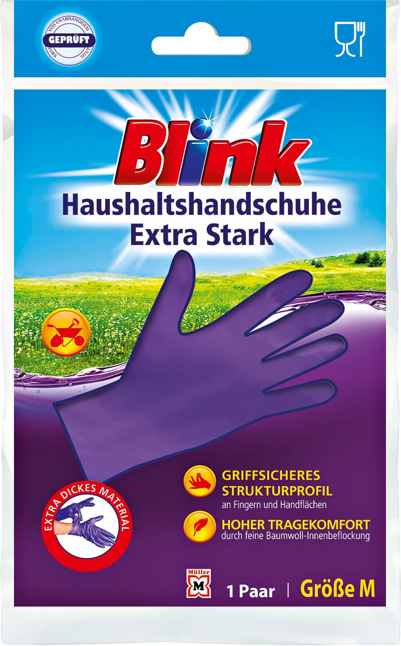 Müller EigenmarkeBlink Haushaltshandschuhe, extra stark1,39 € / 1 Stk.Online verfügbarIn die Filiale lieferbar