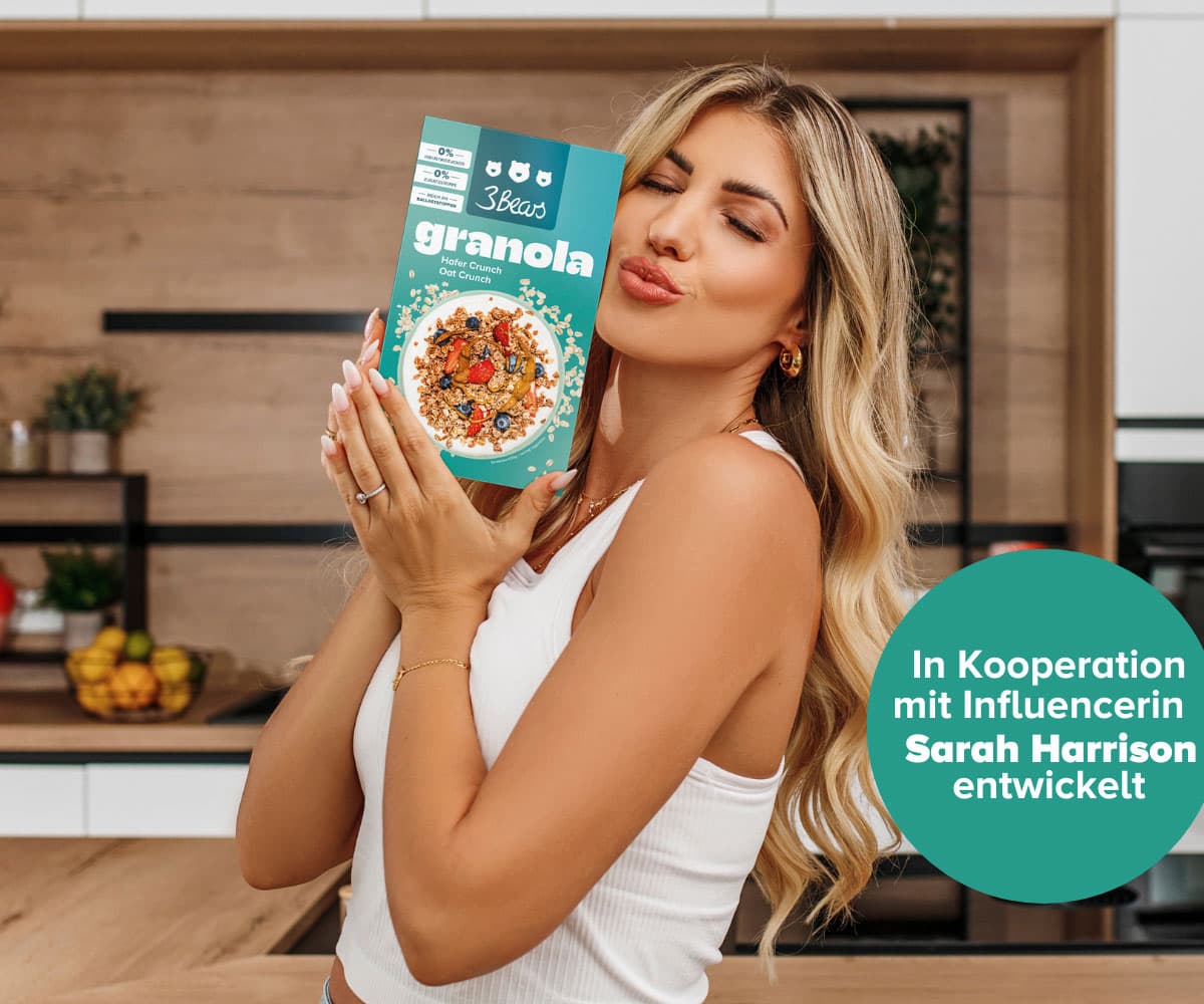 Das 3Bears Granola Hafer Crunch sorgt für einen knusprigen Genuss am Morgen. Die Mischung aus Hafer, gepufftem Quinoa und Amaranth bildet die Basis für dieses leckere Frühstück.