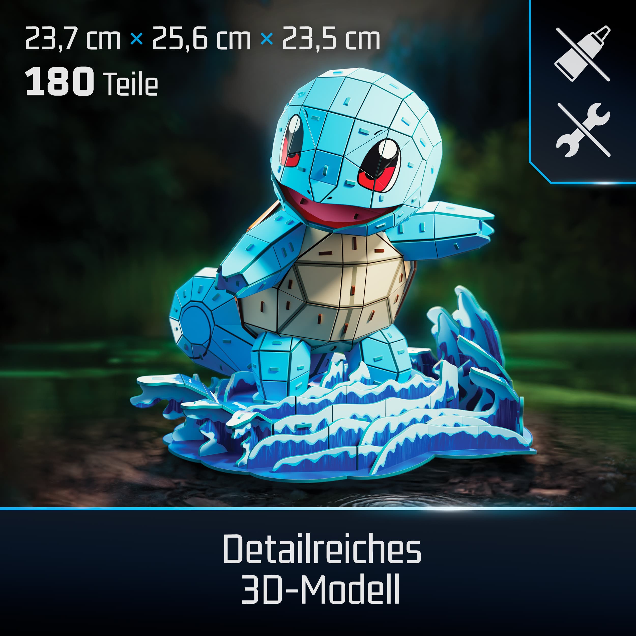 Schiggy (engl.: Squirtle), die beliebte Pokémon Figur wird mit diesem 3D-Modellbausatz aus hochwertigem Karton detailreich zum Leben erweckt