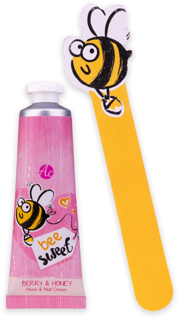 Die enthaltene Hand- & Nagelcreme ist für alle Hauttypen geeignet und verleiht den Händen ein gepflegtes Aussehen. Abgerundet wird das Duo durch eine passende Nagelfeile, die das Pflegeritual komplettiert. Das liebevoll gestaltete Design mit Bienen-Motiven macht die Geschenkpackung zu einem besonderen Blickfang.