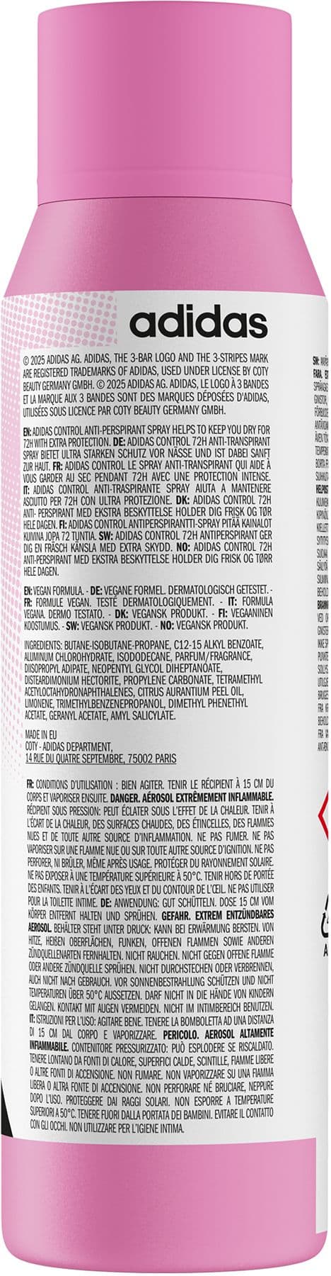 Das adidas Women Deospray A3 Control bietet Frische den ganzen Tag und ist dabei sanft zur Haut durch die alkoholfreie Formel. Weiße Spuren auf Haut und Kleidung werden reduziert und Transpiration und Perspiration wird vorgebeugt.- Frische für den ganzen Tag- Sanft zur Haut- Alkoholfreie Formel- Weiße Spuren auf Haut und Kleidung werden reduziert