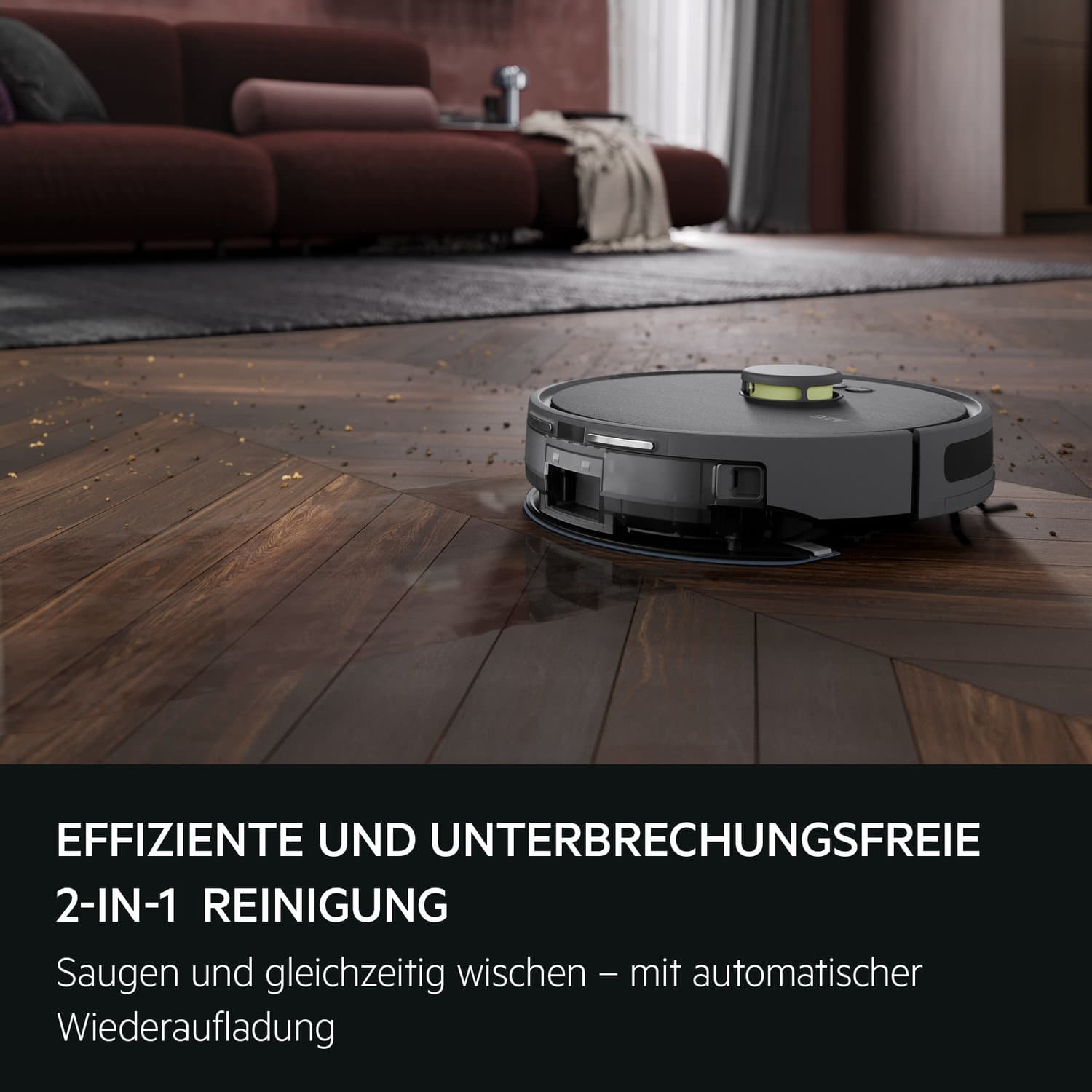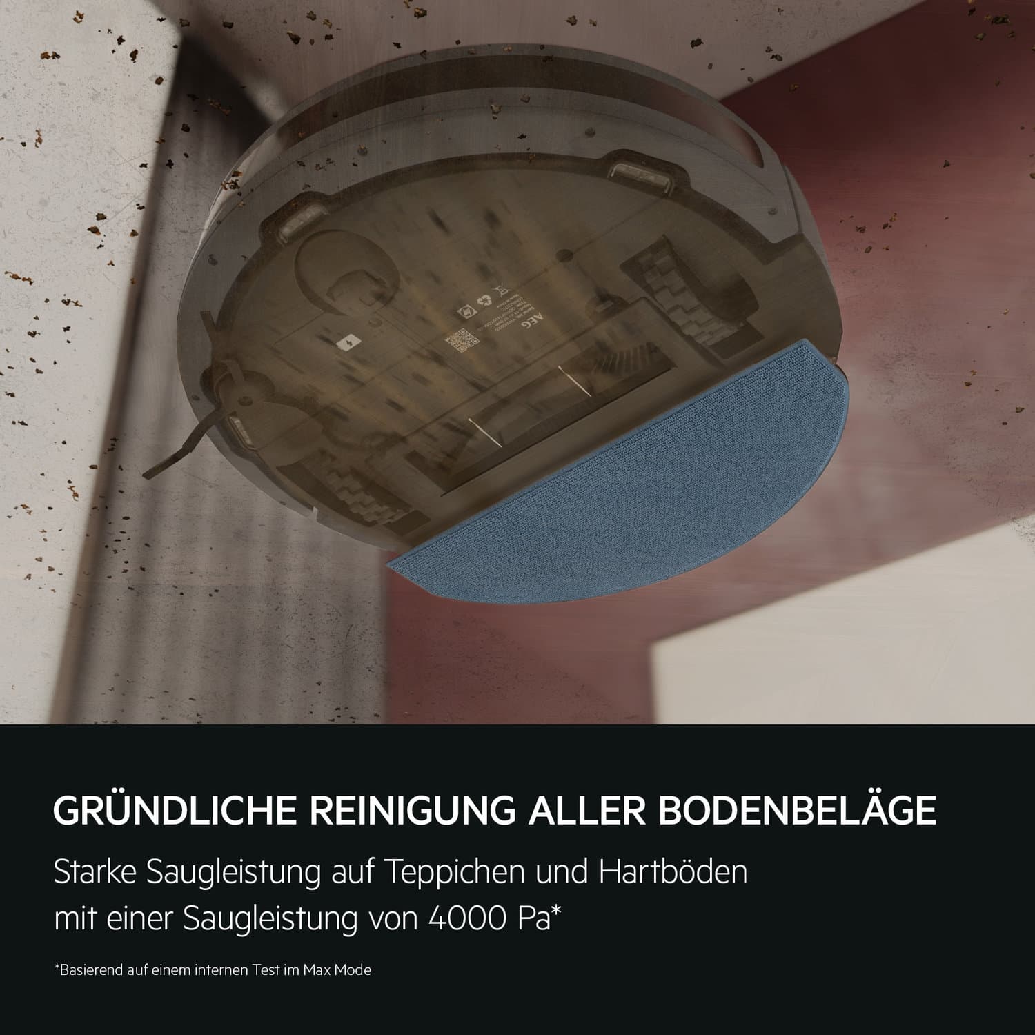 Kraftvolle Reinigung auf allen Bodenbelägen. Die beeindruckende 4000 Pa starke Saugleistung des Reinigungsroboters ist perfekt für alle Bodenbeläge, von Holz oder Fliesen bis hin zu Teppichböden und Läufern. Hausstaub, Tierhaare und größere Staubpartikel sind kein Problem und die Reinigung ist herausragend.
