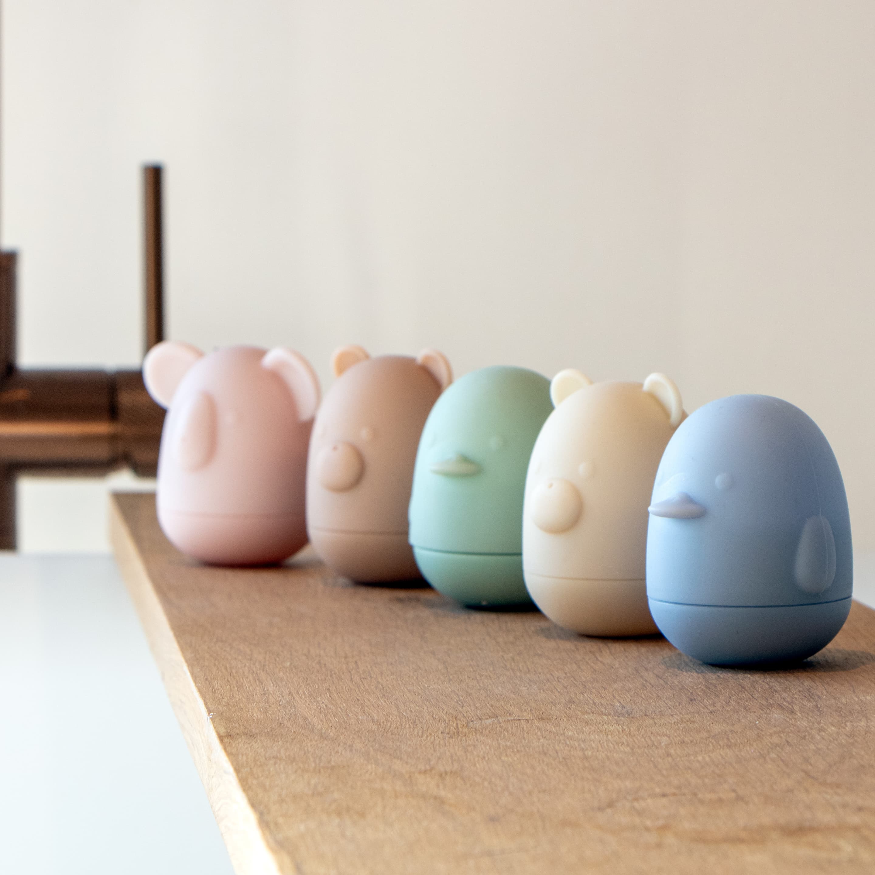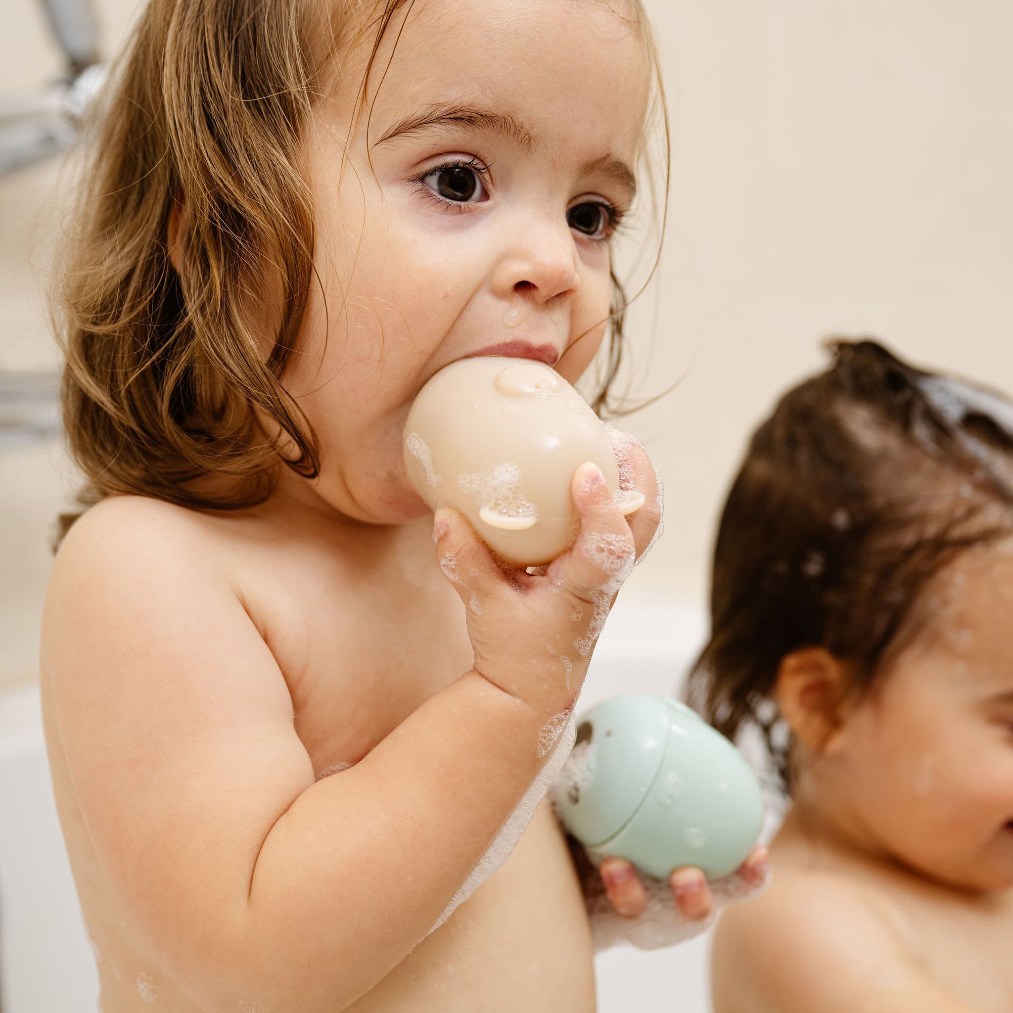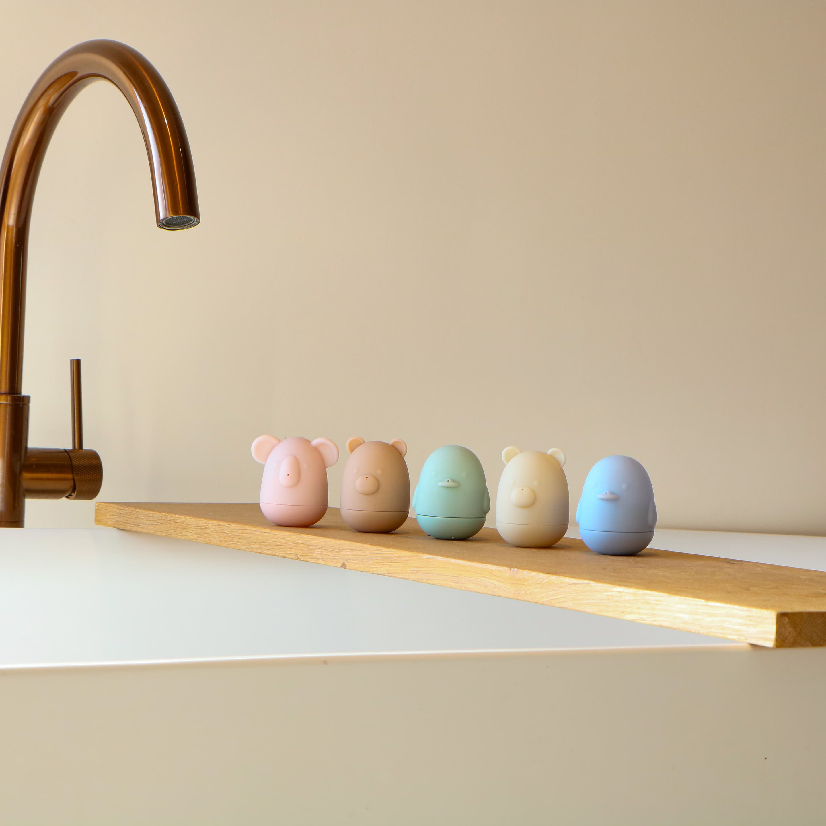 Set aus fünf bunten Badespielzeugen mit Thermometer - Badewannenspielzeug für Babys und Kinder.