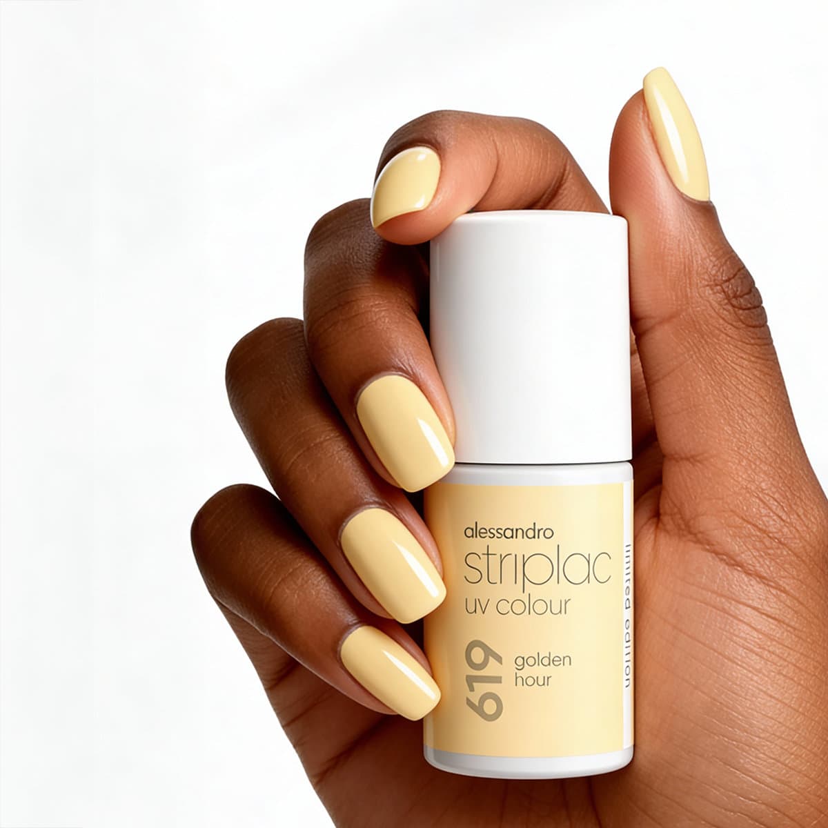 Golden Hour - Ein leuchtendes Gelb mit feinem Gold-Unterton, das die Nägel sofort zum Strahlen bringt. Modern, sommerlich und ein echter Mood-Booster.
