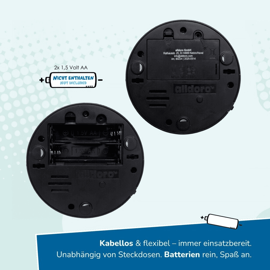 Drei praktische Funktionen: Aus / Sound + Licht / nur Licht lautlos ohne Sound