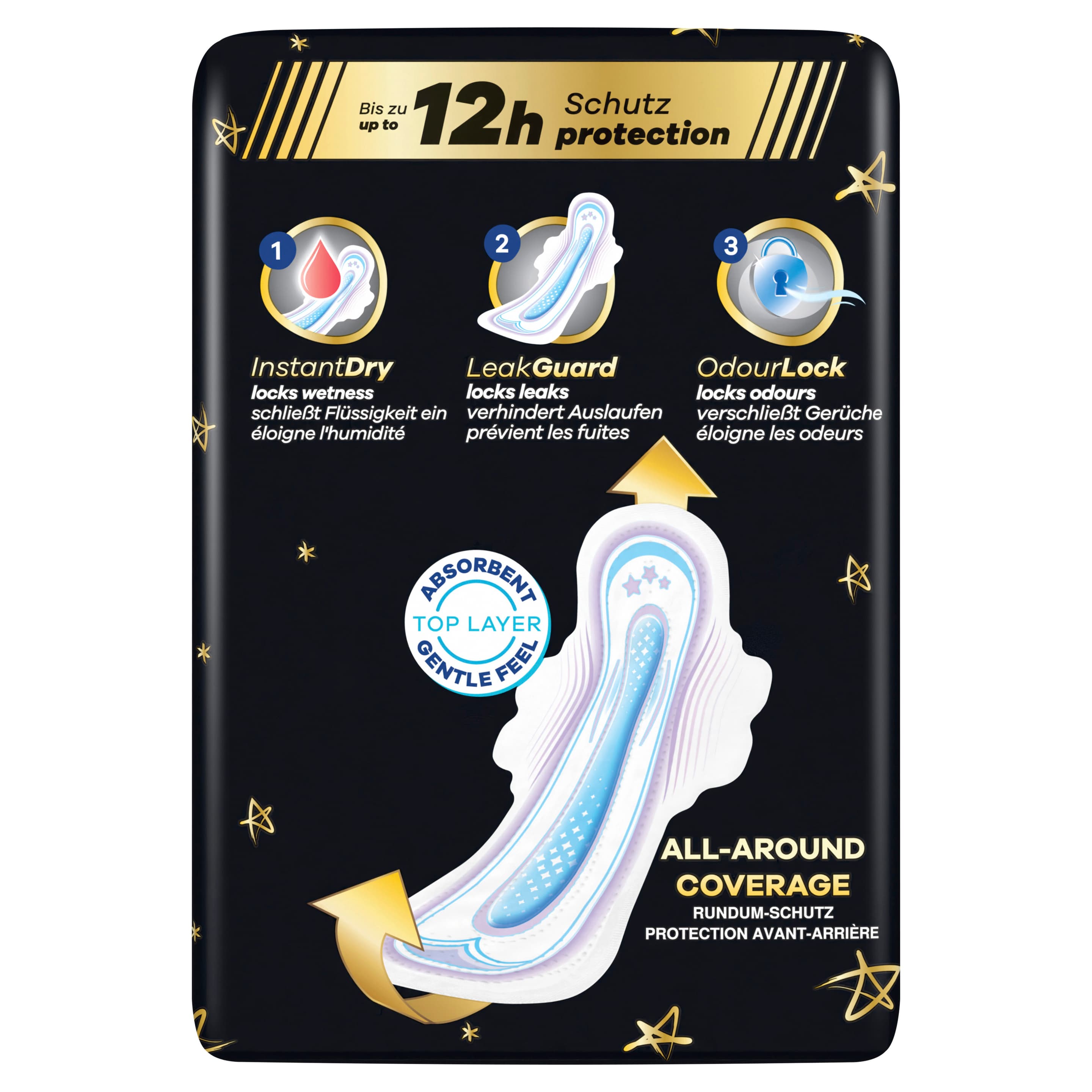 Gib dich nicht mit nicht weniger zufrieden als mit einem guten Schlaf mit bis zu 12 Std. Schutz: Always Ultra Secure Night Extra (Größe 5) Damenbinden mit Flügeln und saugstarker und weicher Oberfläche sind mit 3 Schutzfunktionen ausgestattet, damit du nicht mitten in der Nacht aufwachst, um das Auslaufen zu überprüfen oder deine Binde wechseln zu müssen. Eine um 9% größere Vorderseite und eine um 85% größere Rückseite (im Vergleich zu Always Ultra Normal Größe 1) in Kombination mit unserer LeakGuard-Technologie sorgen für Rumdum-Schutz, um Auslaufen während der Periodennächte zu vermeiden. Always Ultra Binden sind von der Skin Health Alliance dermatologisch bestätigt.
