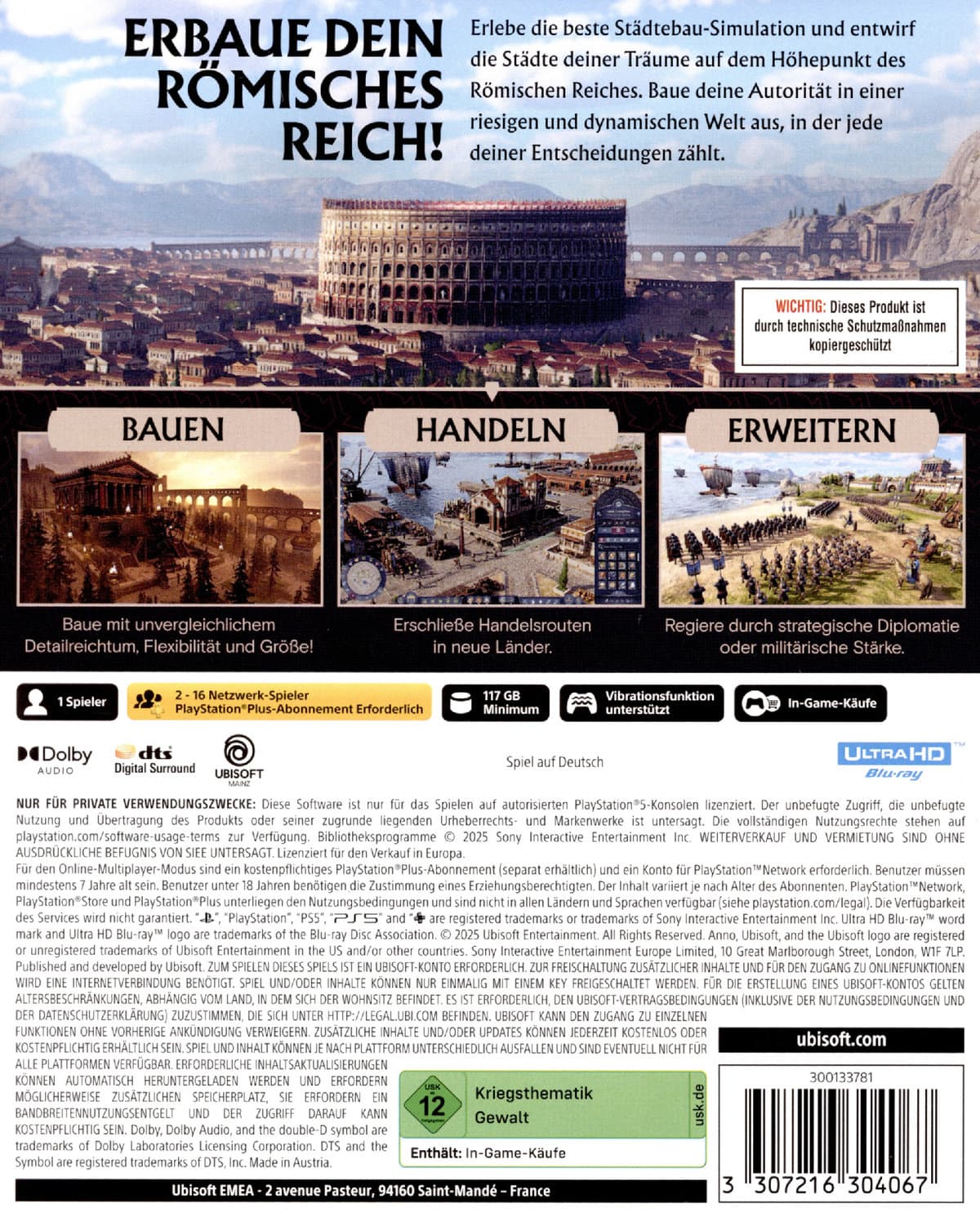 Im neuesten Teil der preisgekrönten Anno-Strategiereihe liegt es in deiner Hand, das Römische Reich im Jahr 117 nach deinen Vorstellungen zu formen. Wirst du als Statthalter das Wirtschaftswachstum fördern oder deine Herrschaft durch Dominanz ausweiten? Eine Rebellion anführen oder eine vielfältige Kultur vereinen?