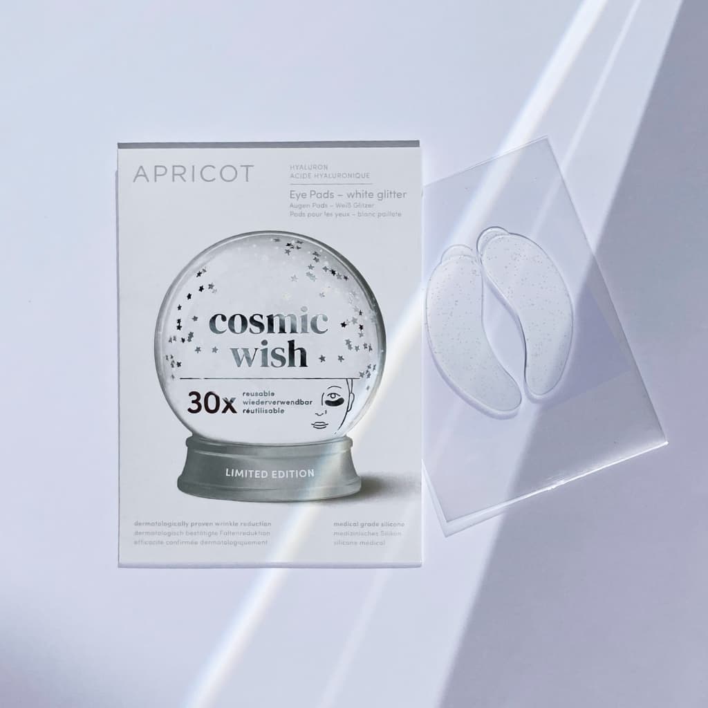 Ein Hauch von Magie für deine Augen – unsere cosmic wish Limited Edition bringt winterlichen Zauber in deine Pflegeroutine: Die wiederverwendbaren Augen Pads schenken deiner Haut nicht nur intensive Feuchtigkeit, sondern lassen müde Augenpartien in neuem Licht erstrahlen. Angereichert mit niedermolekularem Hyaluron polstern sie feine Linien sichtbar auf und sorgen für einen glatteren, frischeren Blick. Hergestellt aus hochwertigem, medizinischem Silikon sind sie für alle Hauttypen geeignet. Dermatologische Tests bestätigen geschmeidigere Haut und sichtbar reduzierte Falten ab der 1. Anwendung.