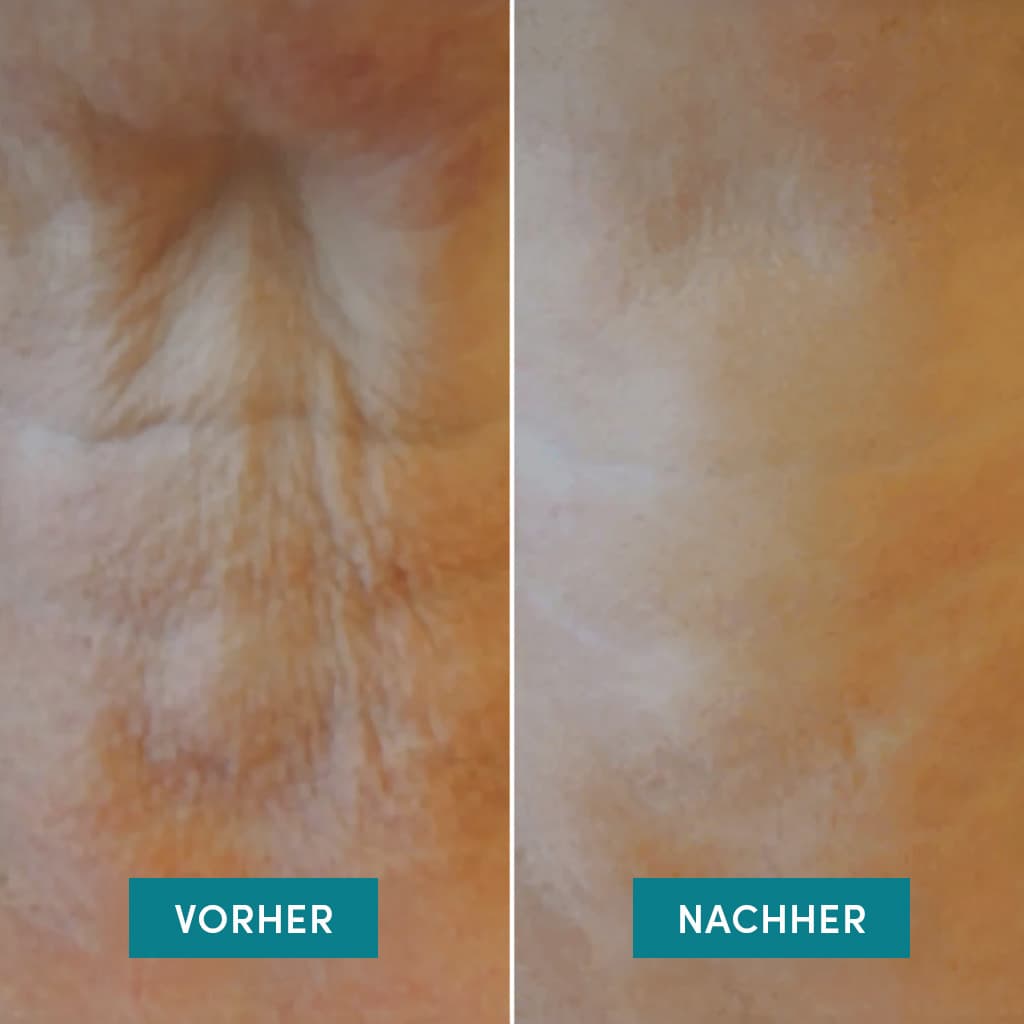 Anwendungshinweis1. Betroffene Hautpartie reinigen. Die Haut sollte sauber und trocken sein. 2. Bestehende Fältchen mit den Fingern glattziehen. Darauf achten, keine Falten einzukleben. 3. Das Pad auf dem Dekolleté platzieren. Keine zusätzlichen Cremes oder Seren unter dem Pad verwenden. 4. Für sichtbare Ergebnisse das Pad regelmäßig mindestens 1 Stunde oder über Nacht tragen. 6. Das Pad alle 2-3 Anwendung unter fließendem Wasser und einer ölfreien Seife reinigen. Anschließend auf der Folie lufttrocknen lassen. 7. Nach der Anwendung die gewohnte Skincare-Routine fortsetzen.