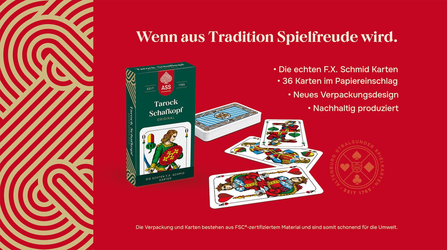 Das Schafkopf/Tarock bayerisches Bild in Faltschachtel enthält insgesamt 36 Karten. Diese hochwertigen Karten sind ideal für Schafkopf- und Tarock-Spieler, die das bayerische Kartenbild lieben und eine umweltfreundliche Option suchen.