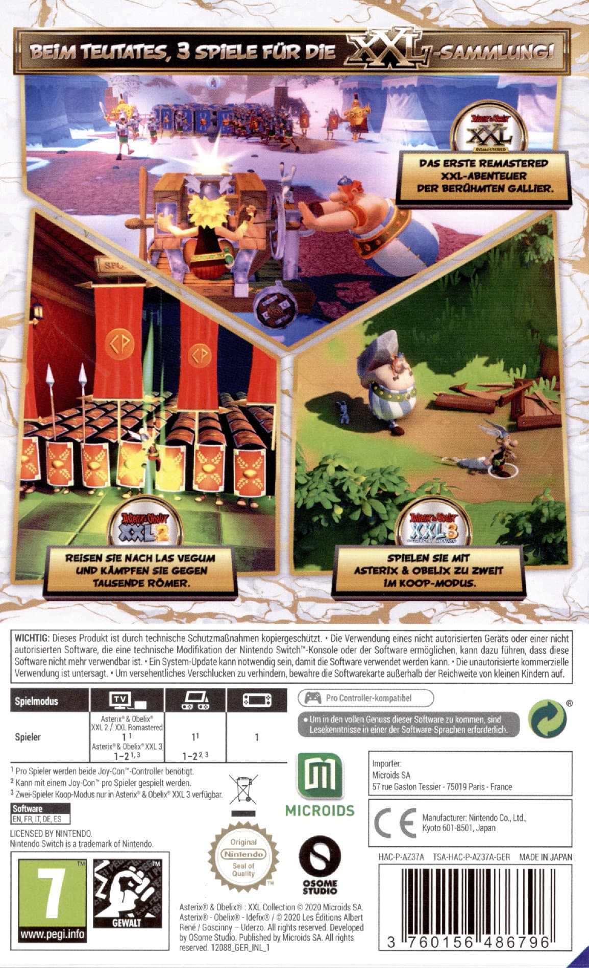 Die Asterix & Obelix Collection enthält alle 3 Asterix & Obelix XXL-Abenteuer für ein vollgepacktes Spiele-Erlebnis deiner Lieblingsgallier! Asterix & Obelix XXL: Romastered Überarbeitete Version mit brandneuer Grafik und 4 neuen Spielmodi Asterix & Obelix XXL 2 Einzigartiges und immersives Abenteuer in einer aktualisierten Version Asterix & Obelix XXL 3: Der Kristall-Hinkelstein Das neueste Abenteuer der Gallier mit Multiplayer-Modus Alle Spiele in deutscher Sprache!