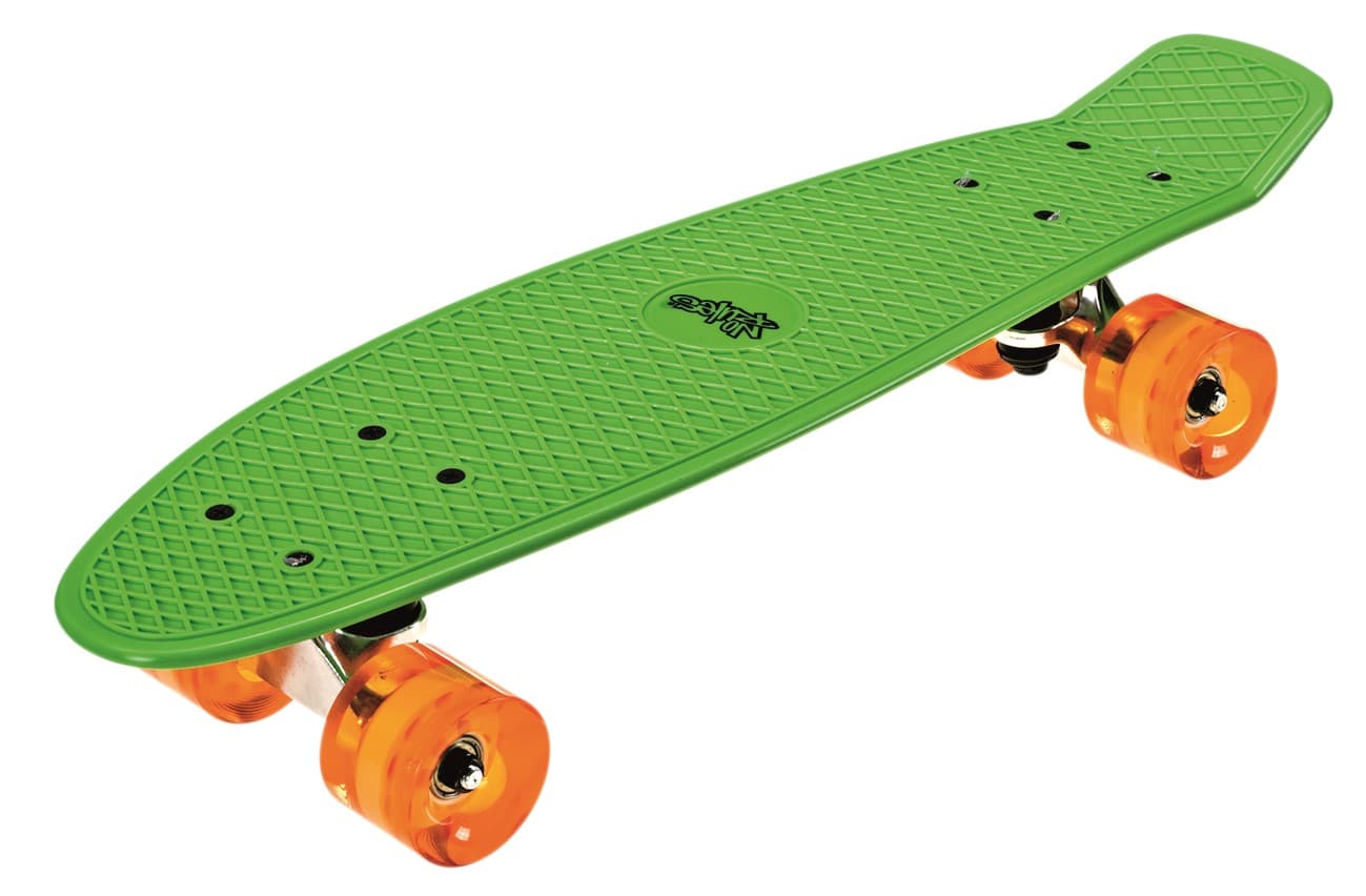 Widerstandsfähiges und flexibles SkateboardDeck aus PPAluminiumachseGegossene PU Rollen,Rollengröße: 60 x 45 mmKugellager ABEC 5Größe ca. 57 x 15 cmMax. Benutzergewicht 100 kg