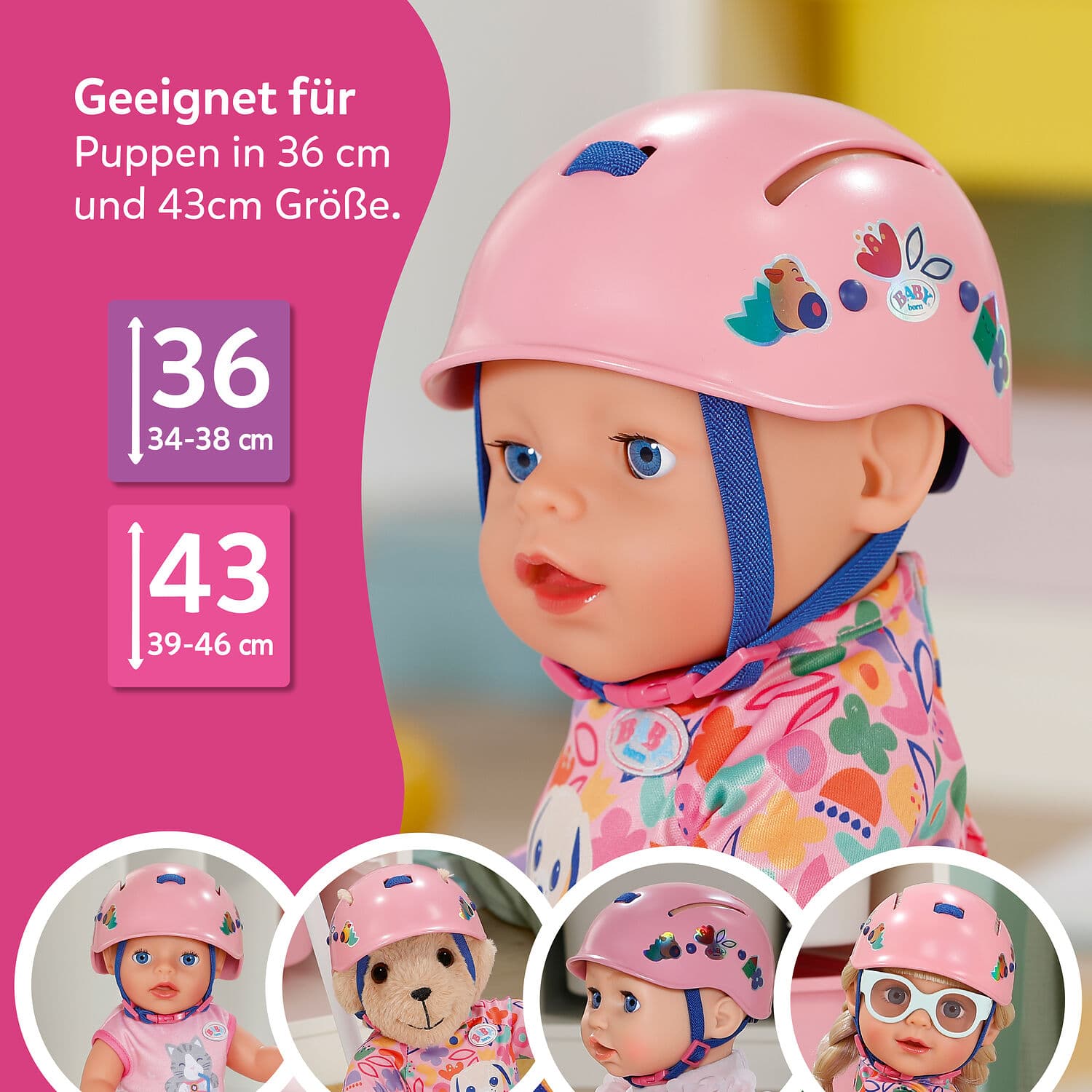 BABY born Helm mit bunten Motiven für 43 cm Puppen
