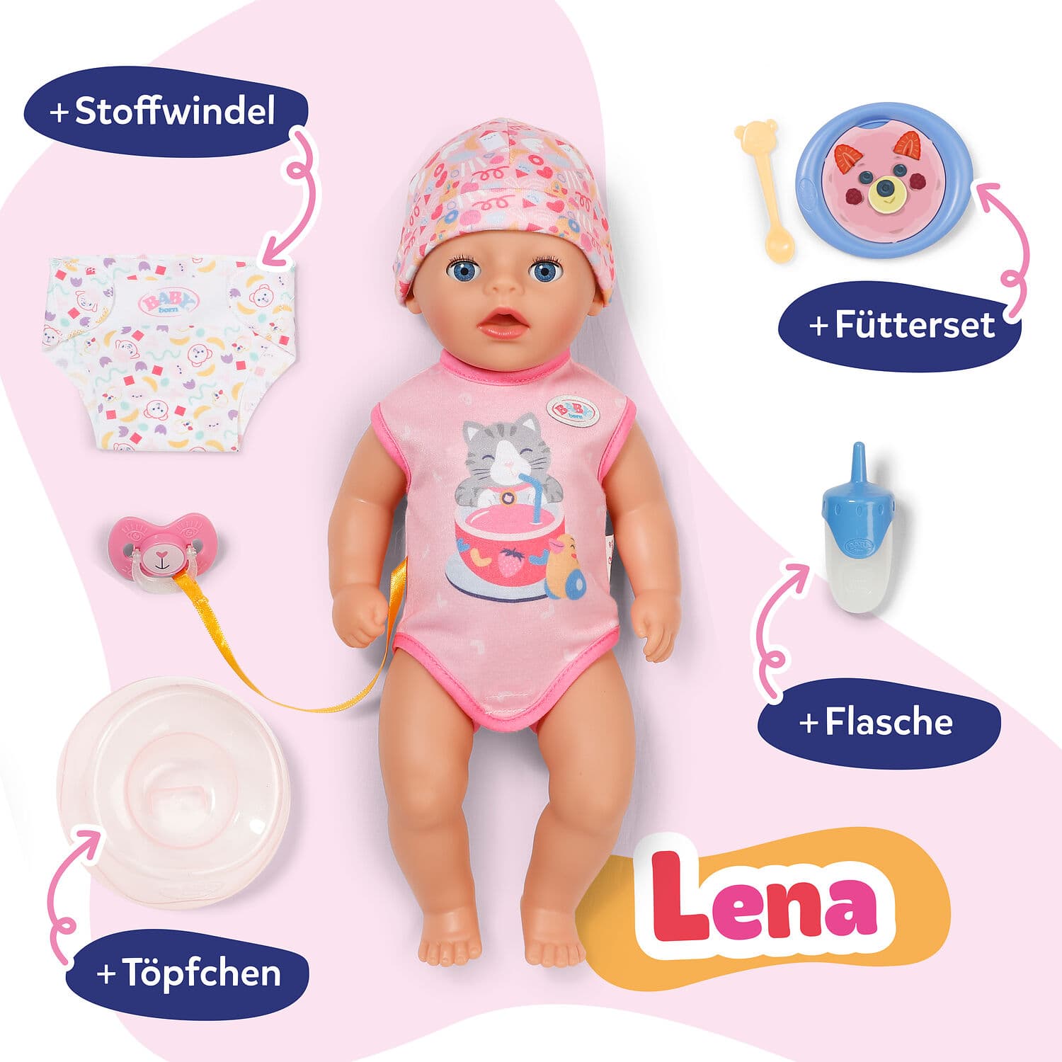 • Lieferumfang: BABY born Lena 36 cm mit Strampler in Pink und passendem Zubehör.