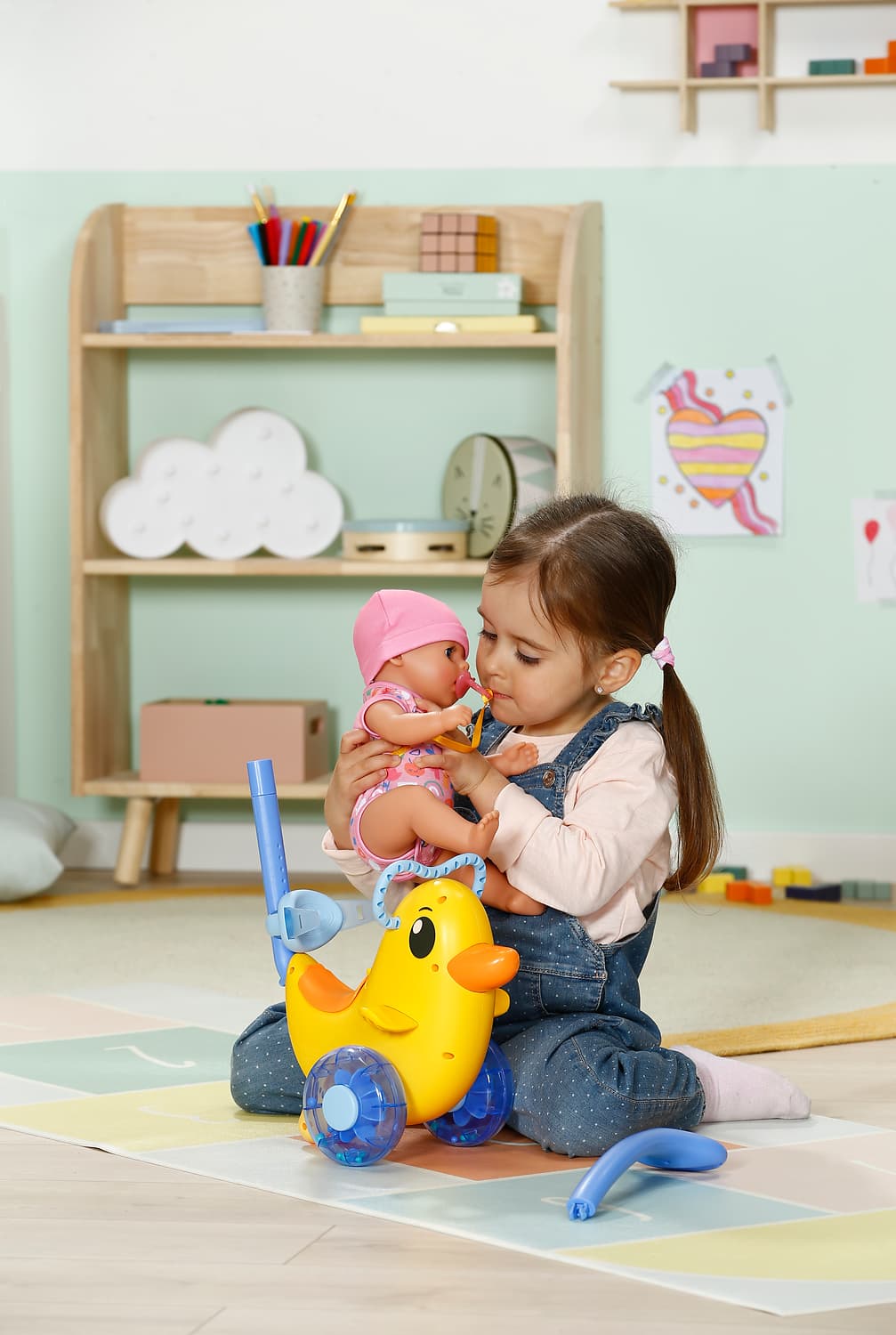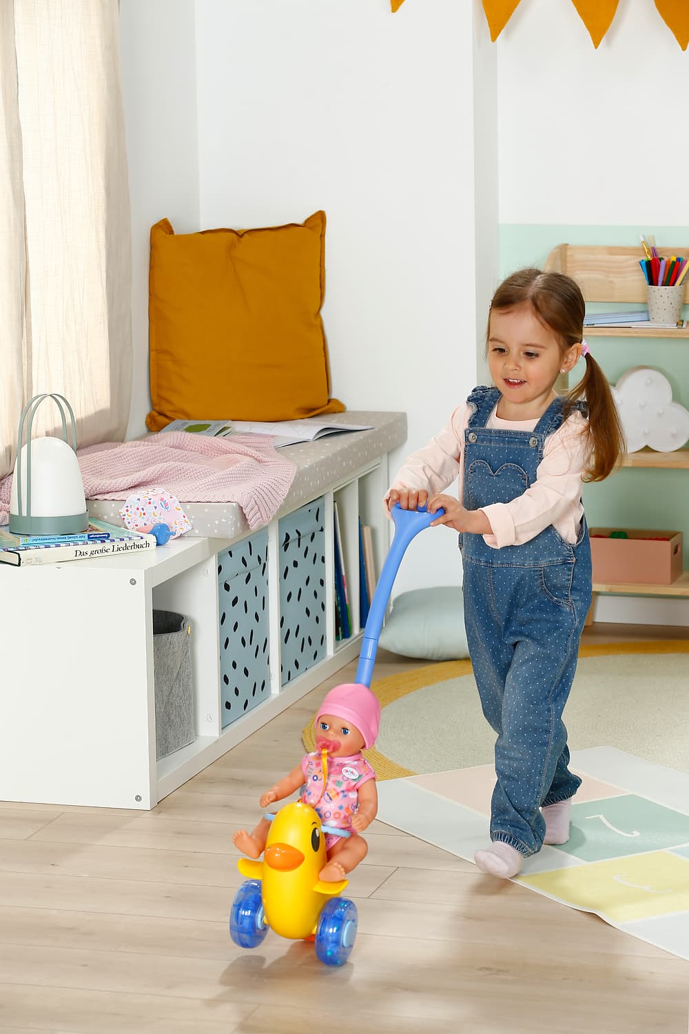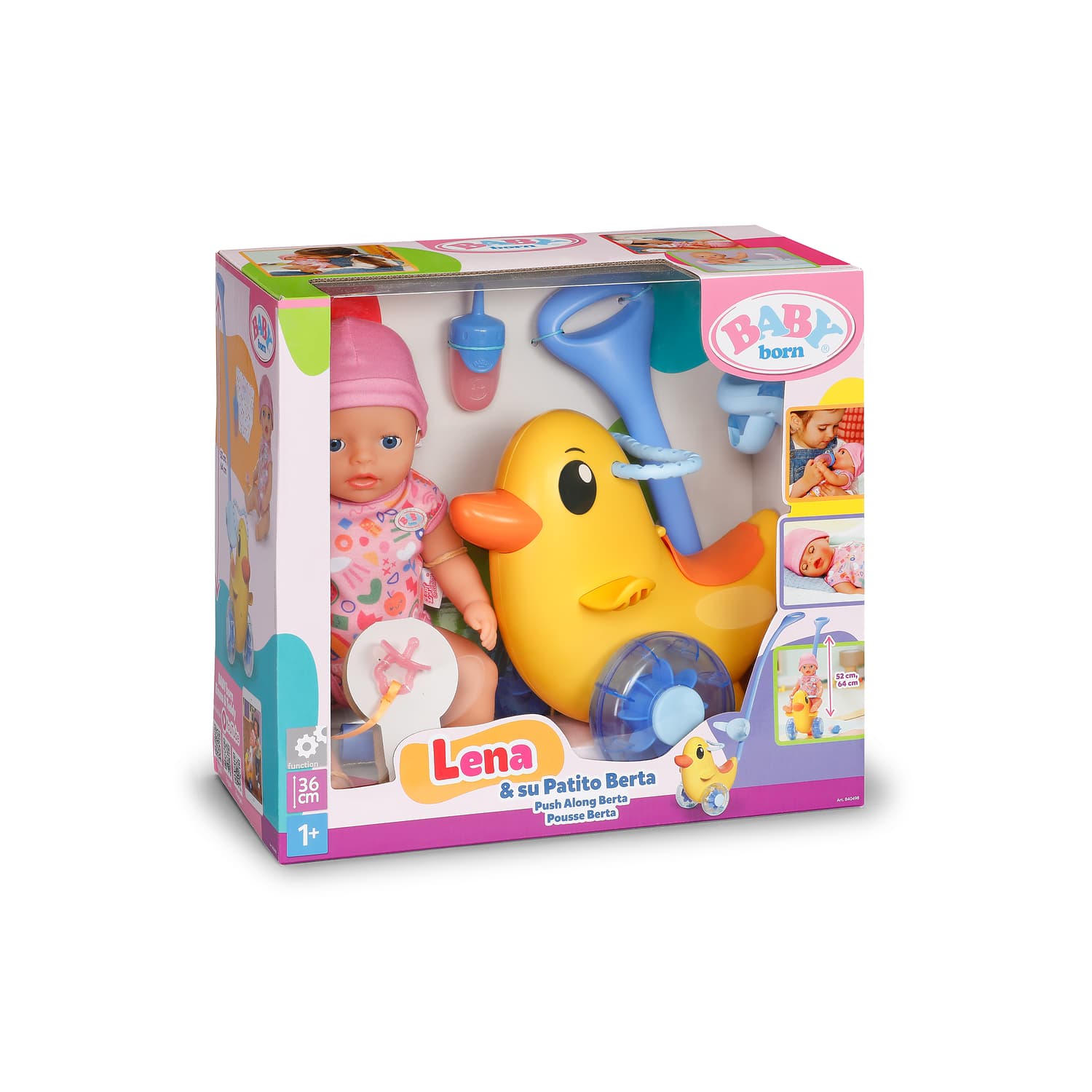 BABY born Lena mit Schiebe-Berta verbindet erstes Puppenspiel mit Bewegung: 36 cm Einsteigerpuppe mit 7 Funktionen und Schiebefahrzeug für aktive Spazierfahrten.