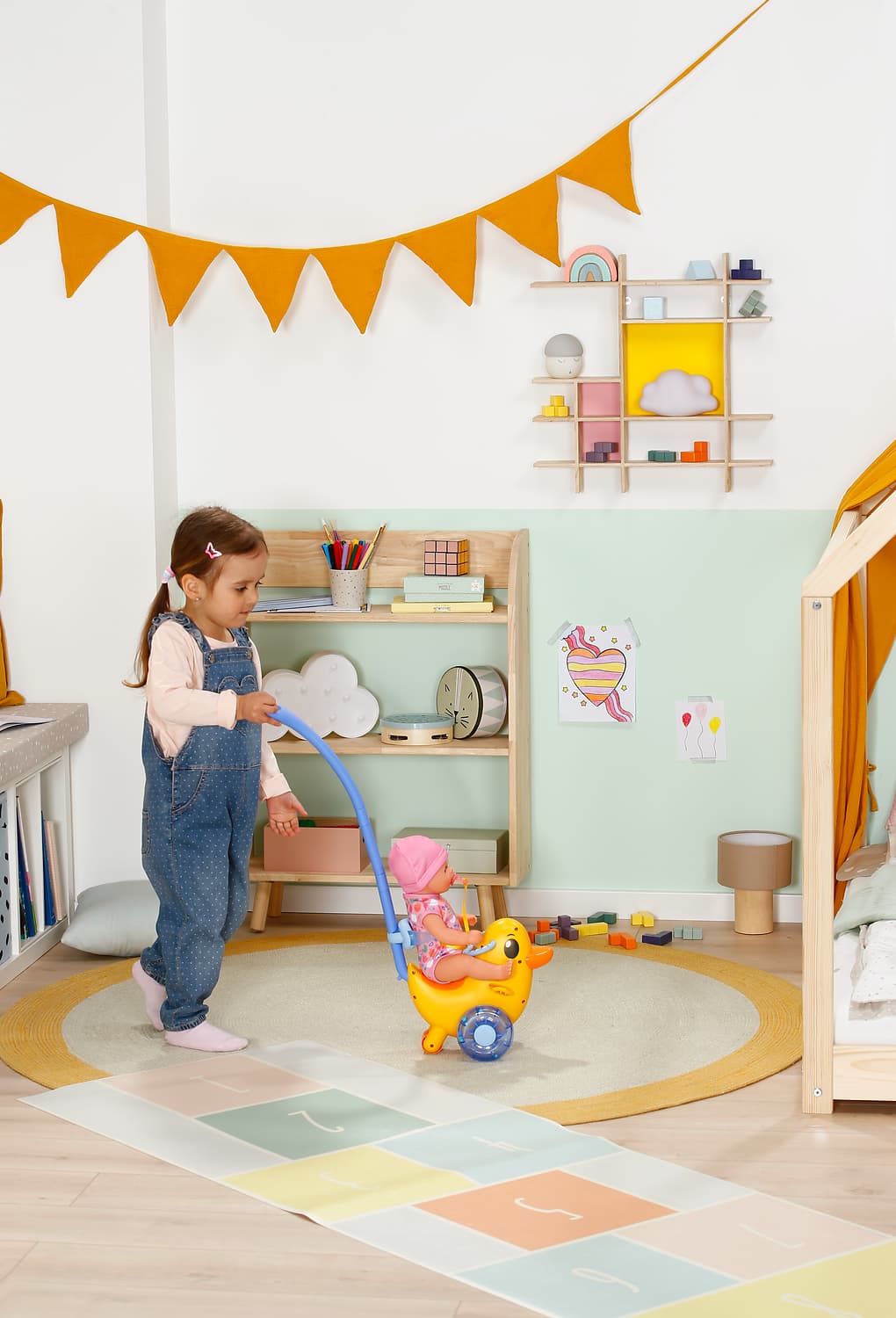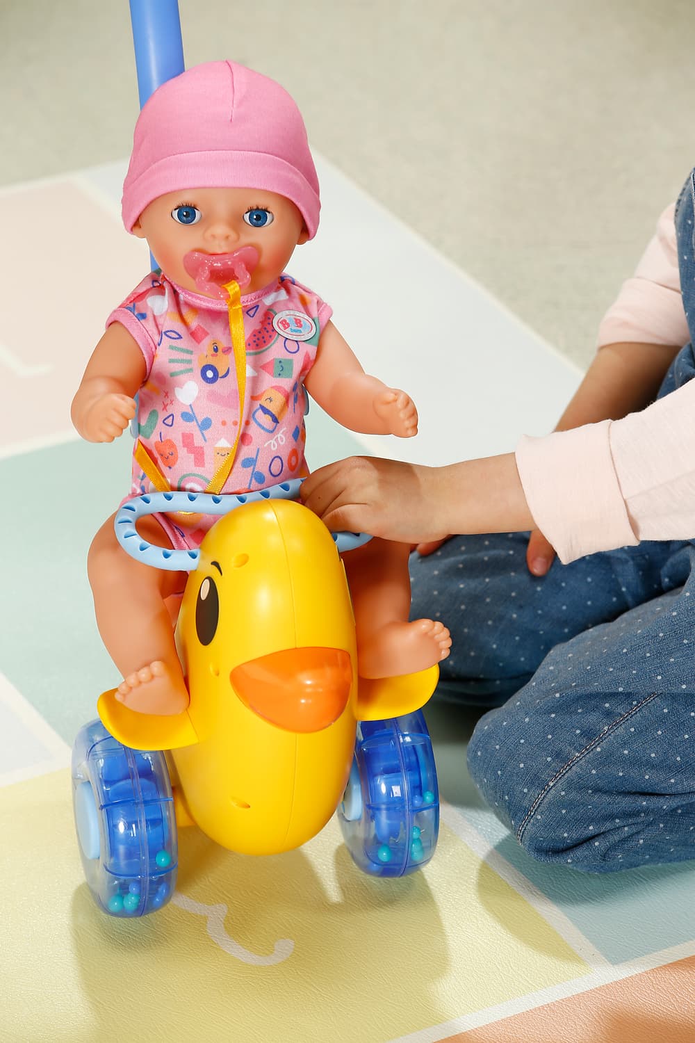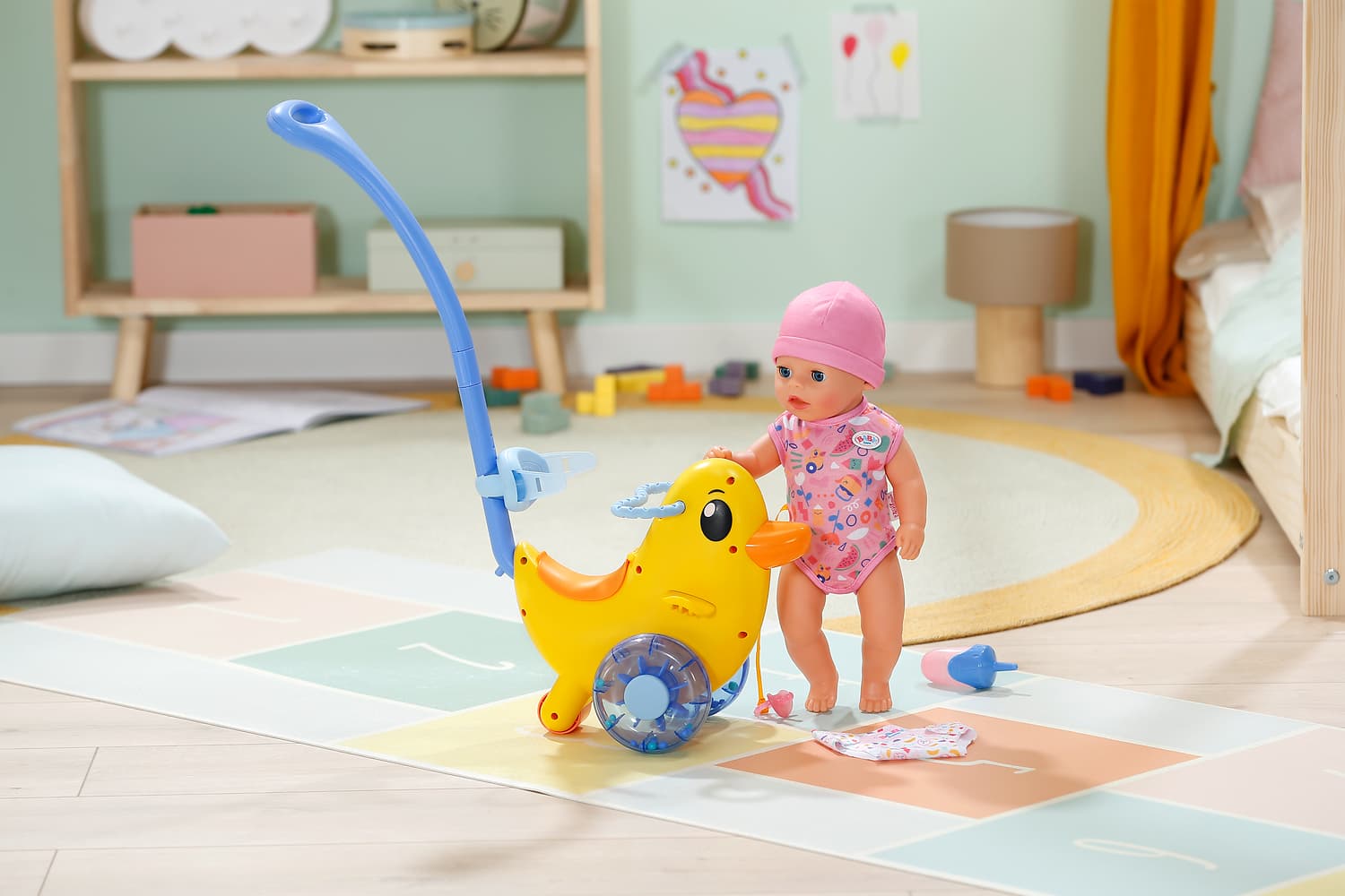 BABY born Lena mit Schiebe-Berta verbindet erstes Puppenspiel mit Bewegung: 36 cm Einsteigerpuppe mit 7 Funktionen und Schiebefahrzeug für aktive Spazierfahrten.