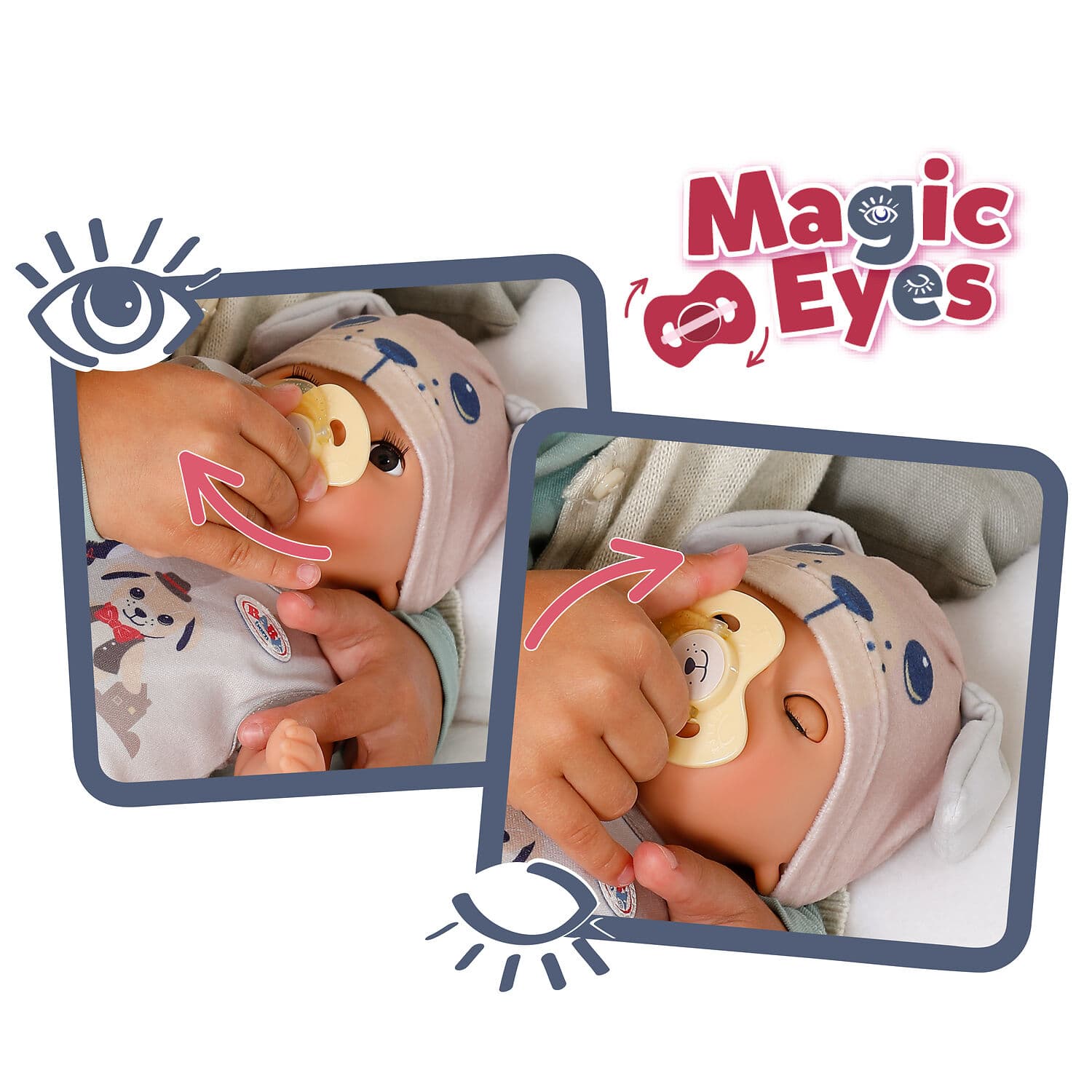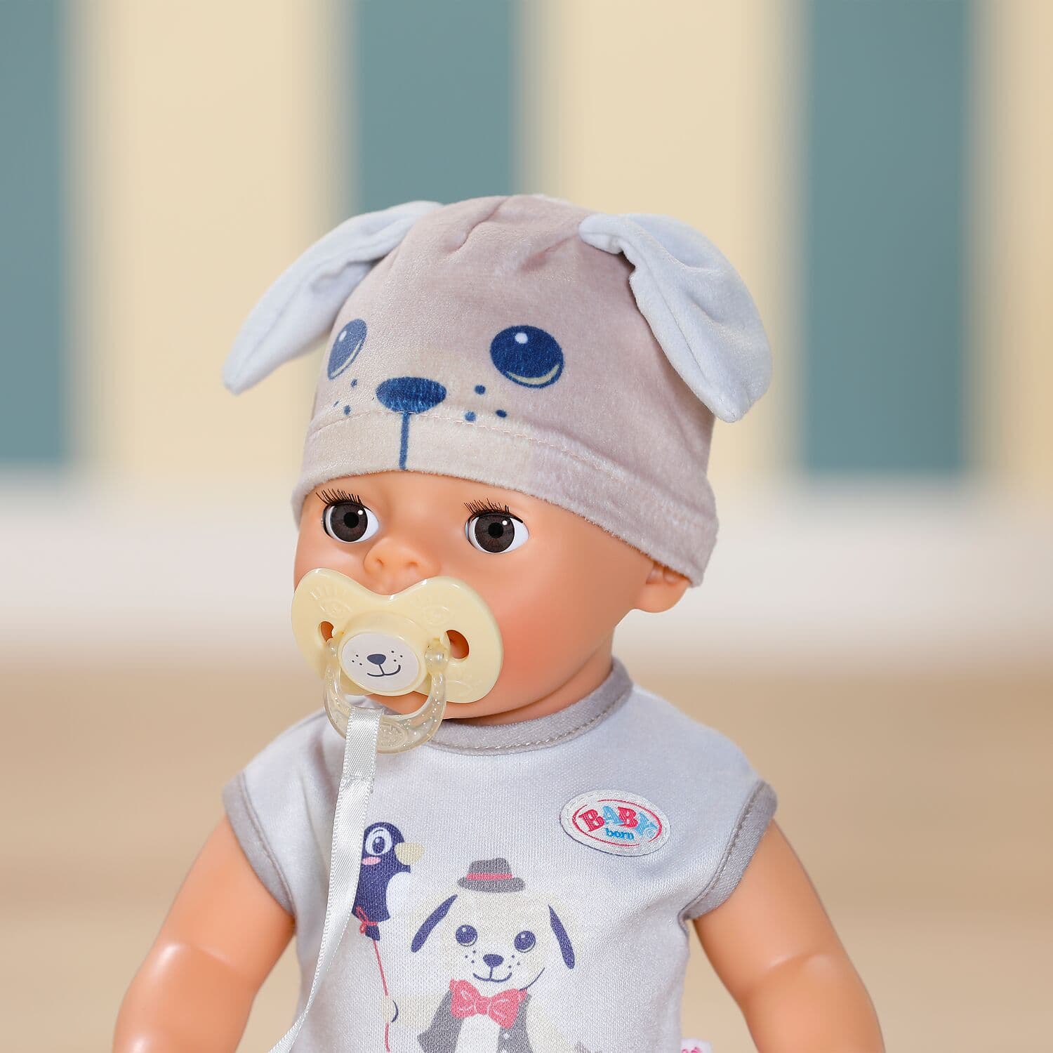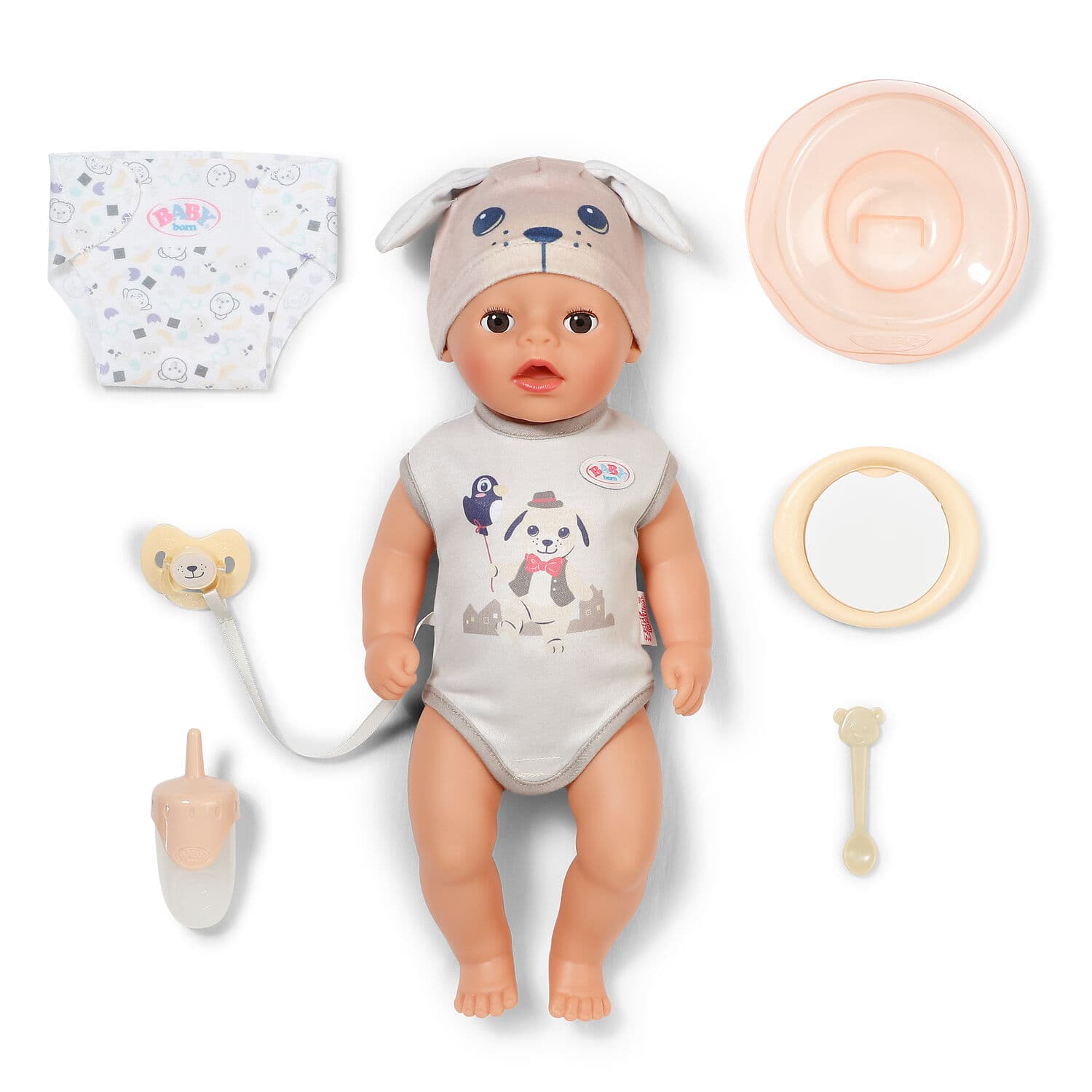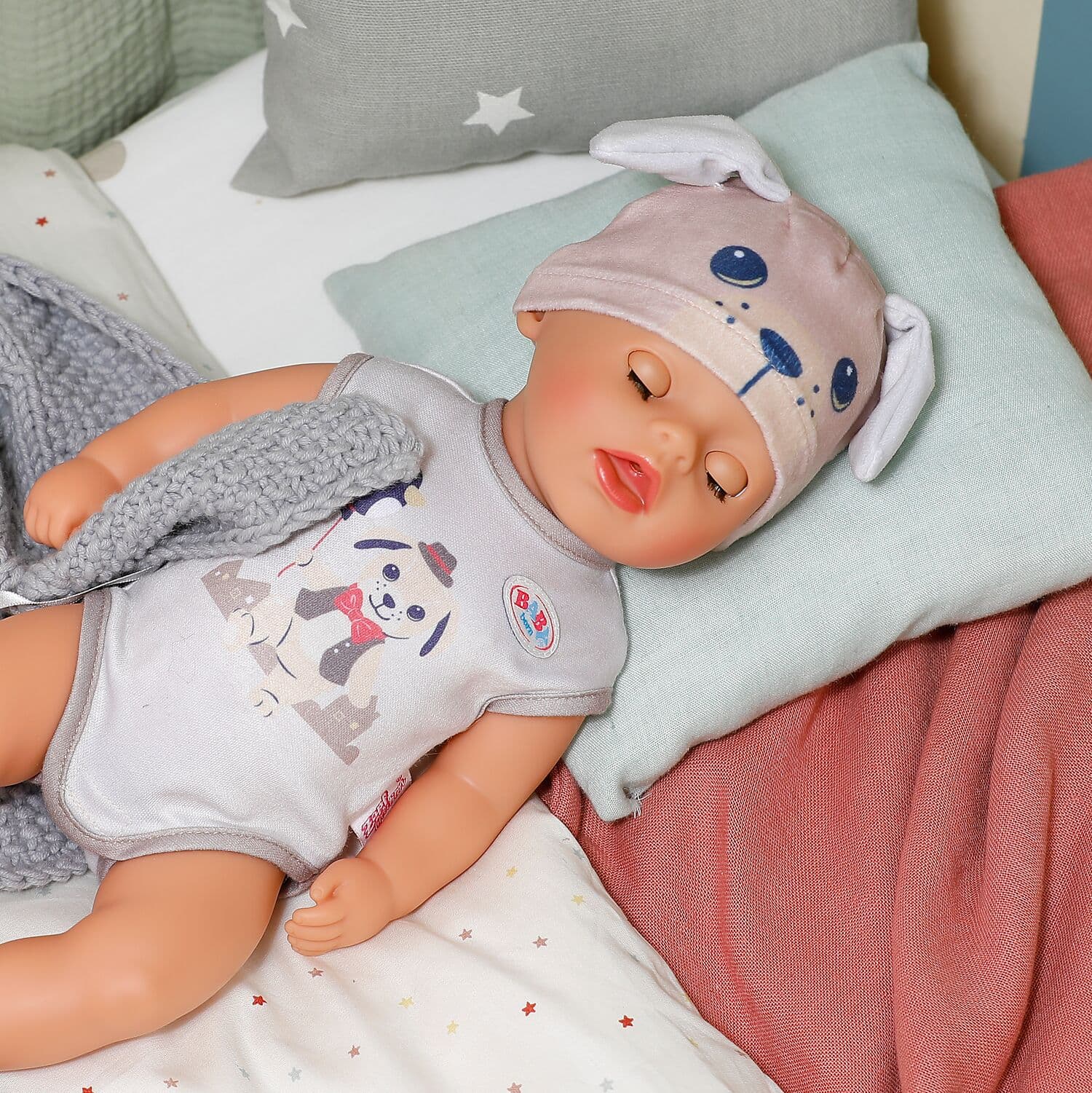 BABY born Lukas in Strampler mit Hundemotiv, 36 cm große Puppe mit 7 Funktionen für Kinder ab 1 Jahr