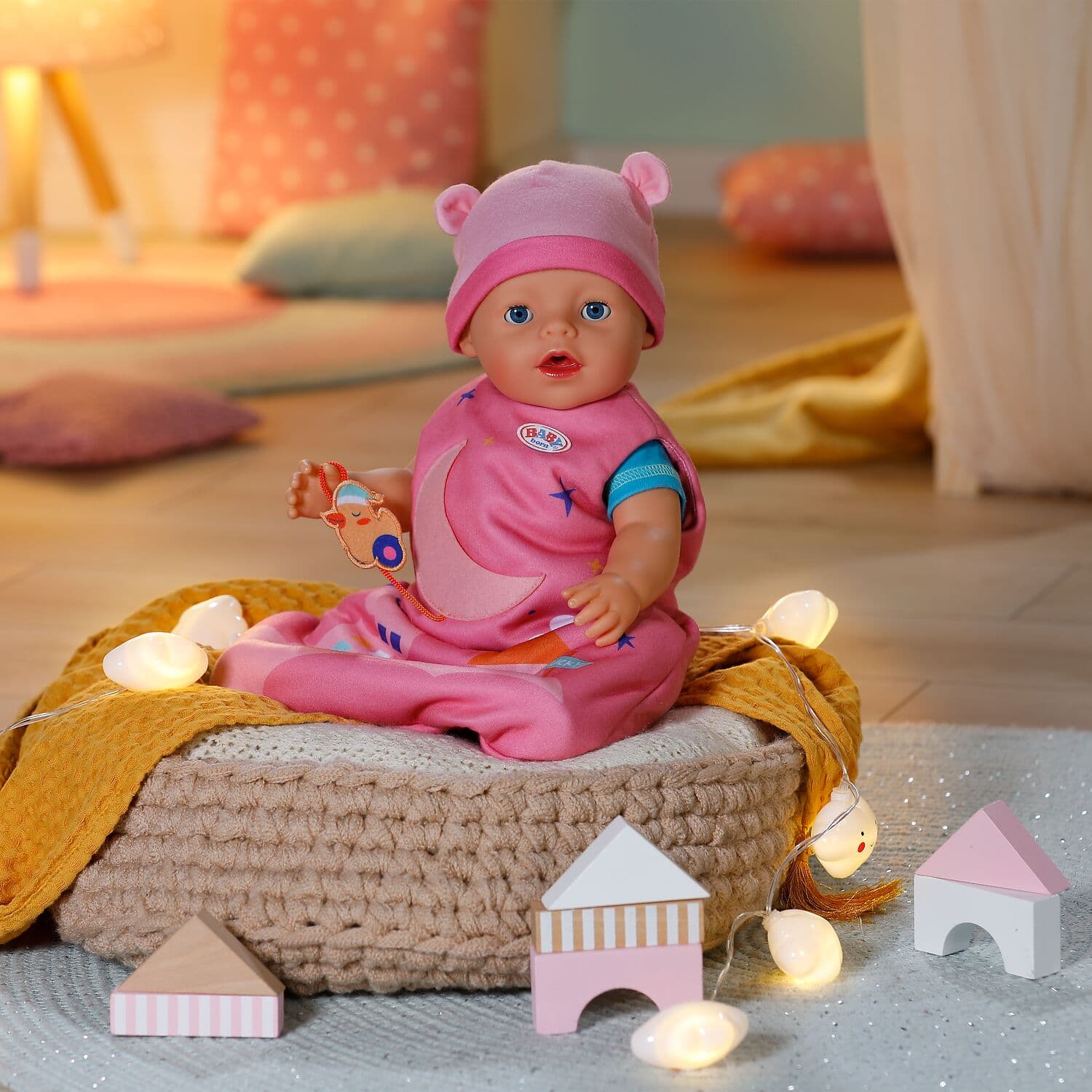 Gute Nacht, kleine Emma! Im Schlafsack mit Mondmotiv und Ente schläft BABY born besonders gemütlich.