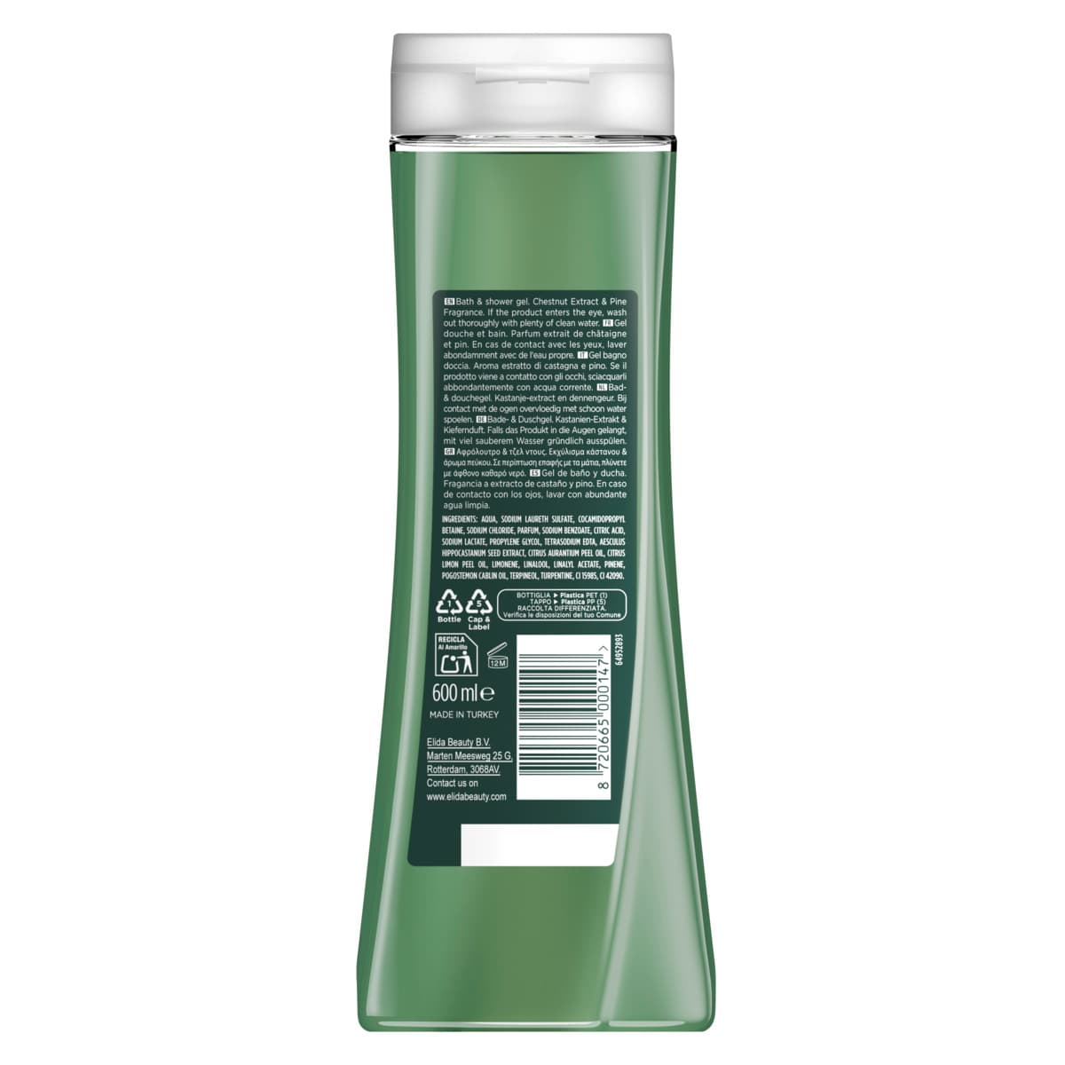 | Inhaltsstoffe | AQUA, SODIUM LAURETH SULFATE, COCAMIDOPROPYL BETAINE, SODIUM CHLORIDE, PARFUM, SODIUM BENZOATE, CITRIC ACID, SODIUM LACTATE, PROPYLENE GLYCOL, TETRASODIUM EDTA, AESCULUS HIPPOCASTANUM SEED EXTRACT, CITRUS AURANTIUM PEEL OIL, CITRUS LIMON PEEL OIL, LIMONENE, LINALOOL, LINALYL ACETATE, PINENE, POGOSTEMON CABLIN OIL, TERPINEOL, TURPENTINE, CI 15985, CI 42090. |