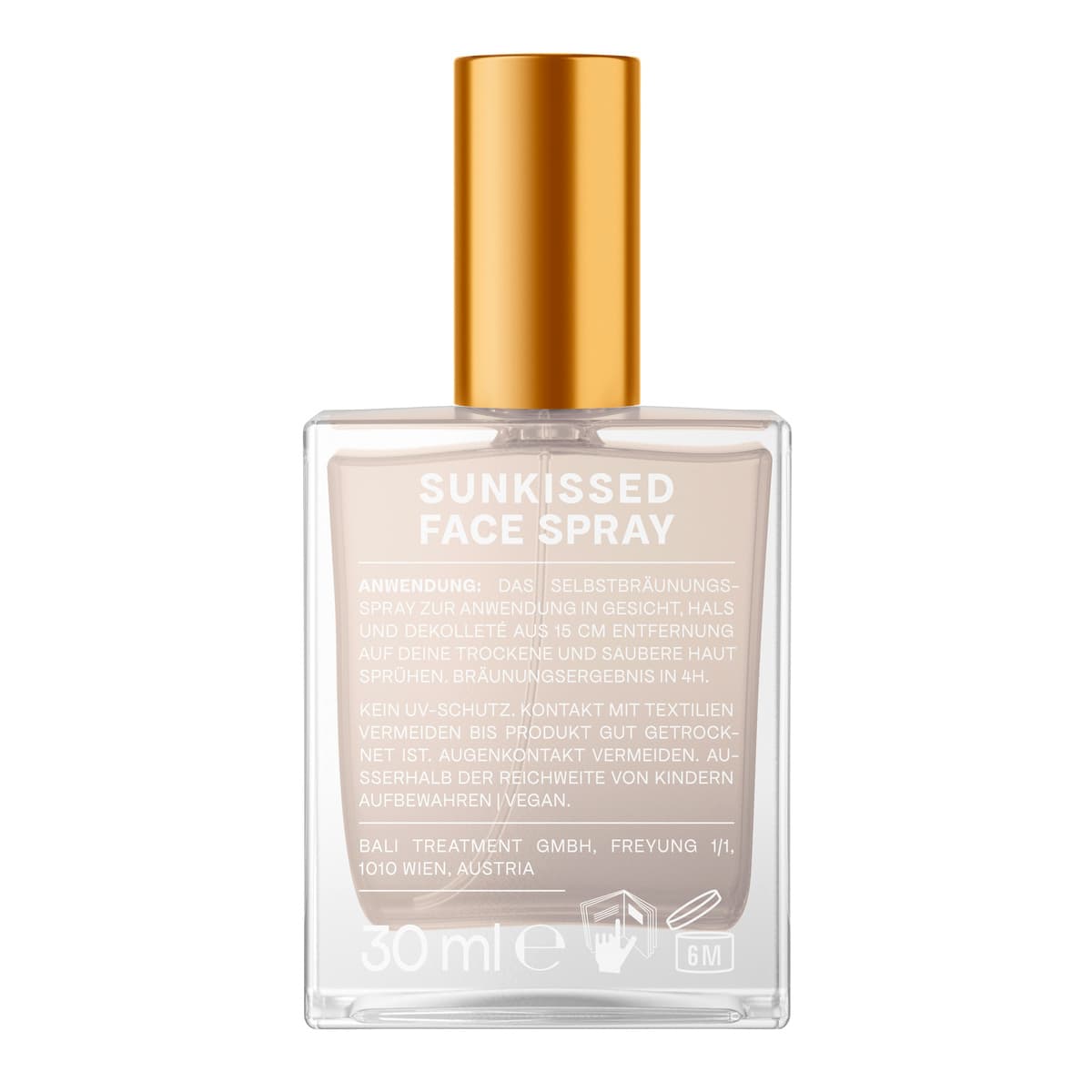 | Anwendungshinweis | Aus ca. 15 cm Entfernung gleichmäßig auf Gesicht, Hals und Dekolleté sprühen. Vor dem Anziehen vollständig trocknen lassen. Kein UV-Schutz. |