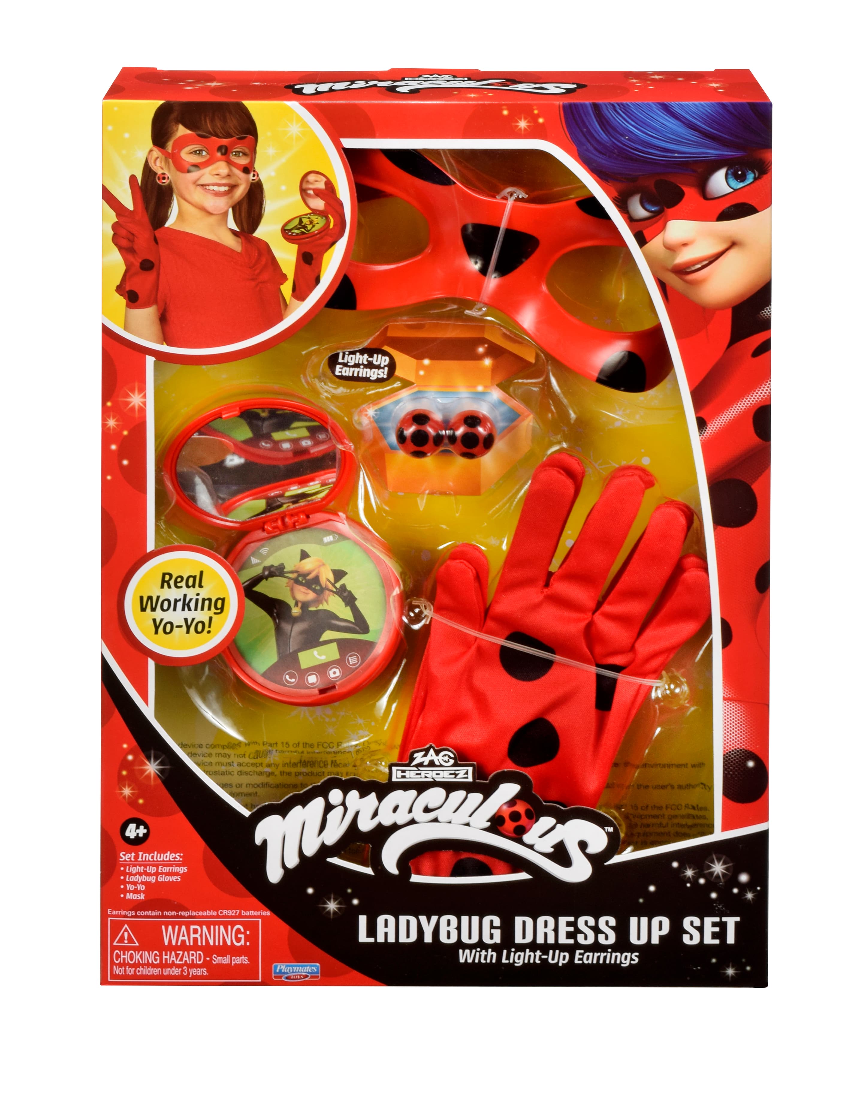 Enthält Maske, Clip-On-Ohrringe, Yoyo mit Akuma und Tikki-Figur