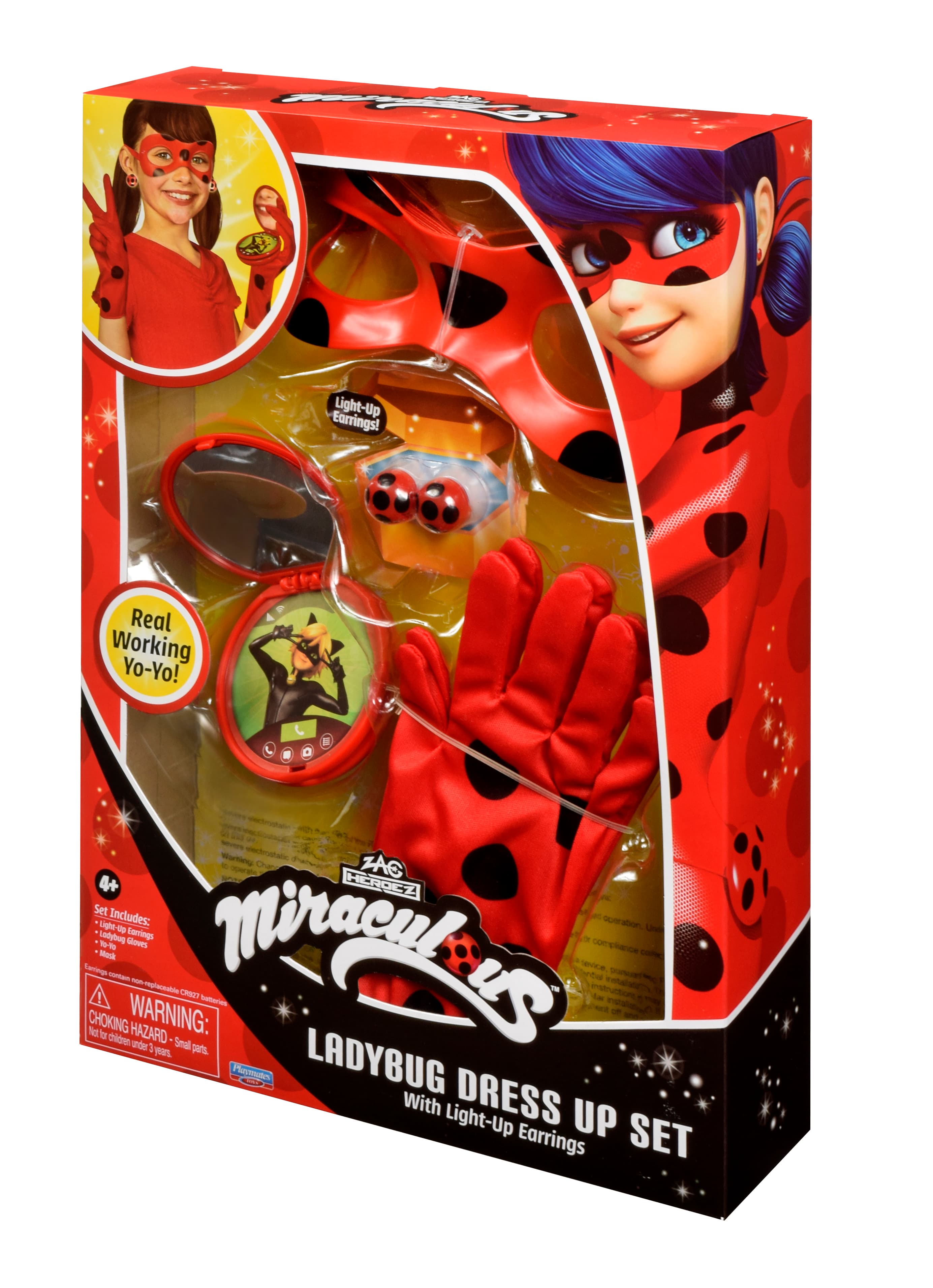 Tauche ein in die magische Welt von Miraculous Ladybug und verwandle dich in deine Lieblingsheldin aus Paris! Mit dem offiziell lizenzierten Miraculous Ladybug Dress Up Set bist du bereit, Paris vor akumatisierten Schurken zu retten. Das Set enthält alles, was kleine Superheldinnen brauchen: die ikonische rote Maske mit schwarzen Punkten, ein Paar Miraculous-Ohrringe (Clip-On), das berühmte Yoyo mit verstecktem Akuma und die süße Kwami-Figur Tikki (ca. 7,5 cm groß).