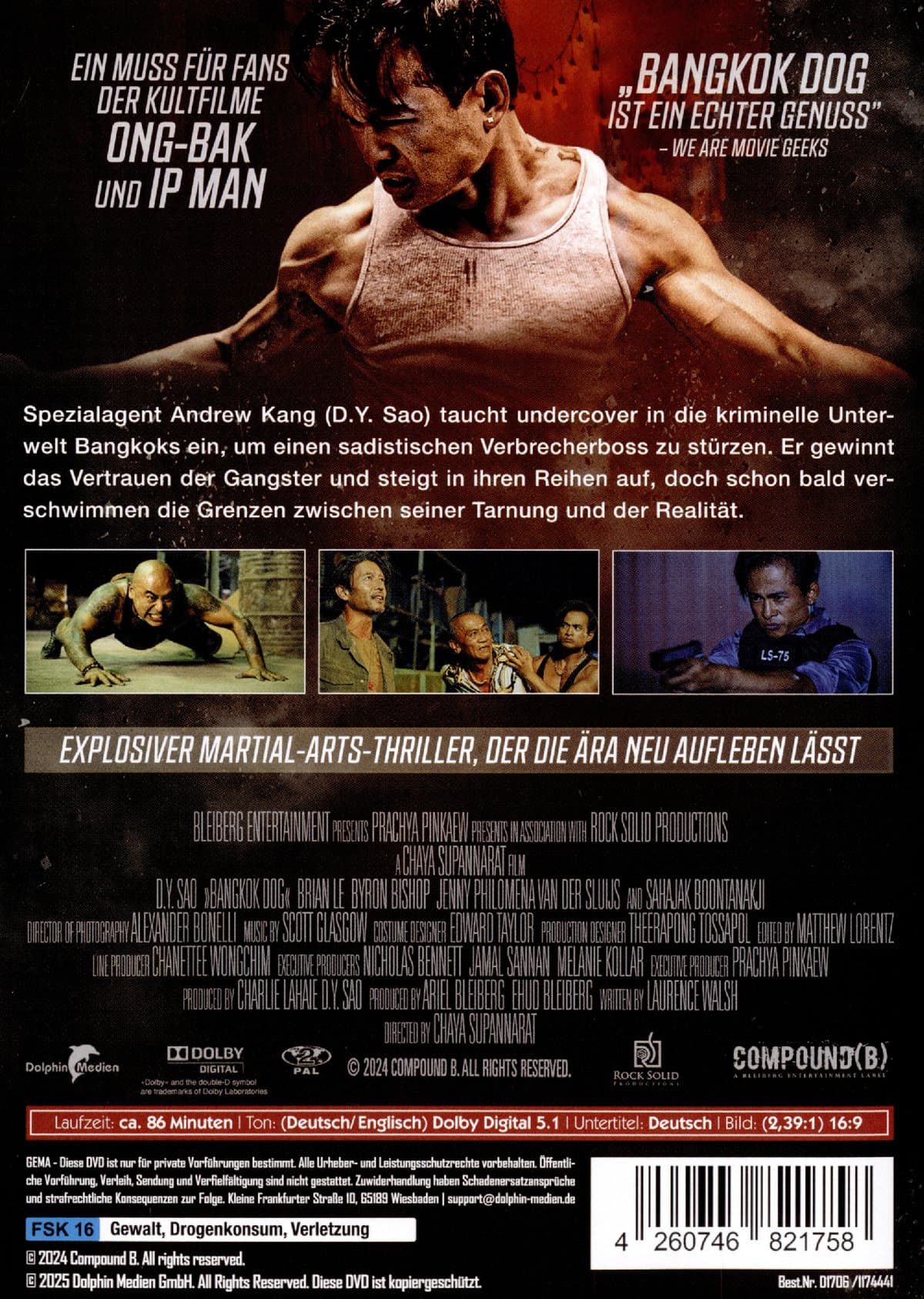 Spezialagent Andrew Kang (D.Y. Sao) wird nach Thailand geschickt, um eine skrupellose Menschenhändlerorganisation zu zerschlagen, die von einem sadistischen Verbrecherboss kontrolliert wird. Mit messerscharfem Verstand und tödlichen Kampfkünsten bahnt sich Kang seinen Weg durch die Unterwelt. Schon bald gewinnt er das Vertrauen der Gangster und steigt in ihren Reihen auf. Doch je tiefer er in die kriminelle Welt eintaucht, desto mehr verschwimmen die Grenzen zwischen seiner Tarnung und der Realität. Wird er die Mission erfüllen – oder sich selbst darin verlieren? Mit Bangkok Dog bringt Regisseurin Chaya Supannarat eine explosive Mischung aus knallharter Action, packender Story und meisterhafter Kampfkunst auf die Leinwand. Inspiriert von den legendären Martial-Arts-Filmen der 80er und 90er Jahre, ist der Film eine Hommage an die goldene Ära des Genres – und zugleich eine kraftvolle Neuinterpretation für die moderne Zeit. Mit einer Mischung aus old-school Martial Arts, modernen Thriller-Elementen und emotionaler Tiefe ist Bangkok Dog mehr als nur ein Actionfilm – es ist eine Rückkehr zu den Wurzeln des Genres und ein Statement für seine Zukunft.