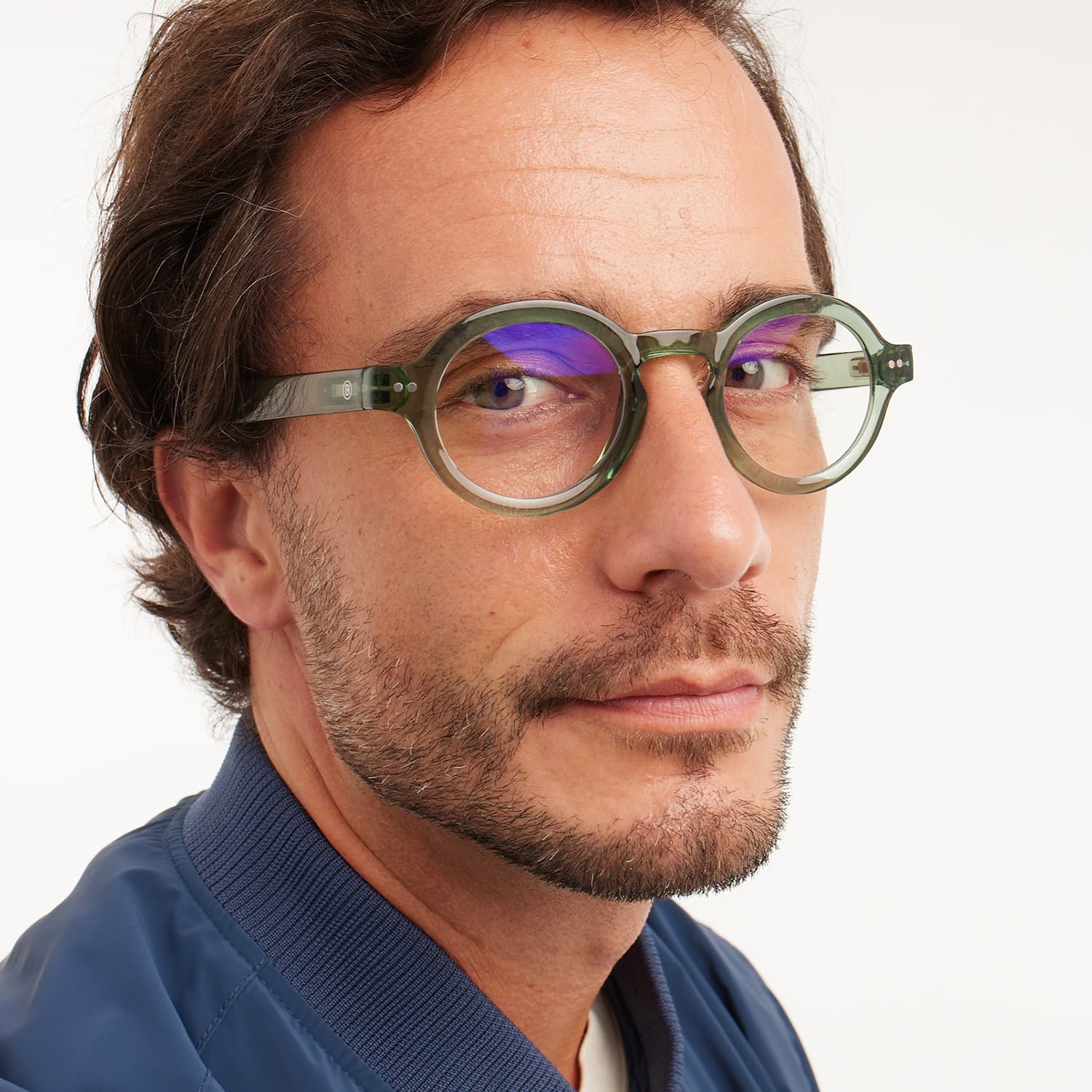 Die Lesebrille Charles Jade Glossy von Barner kombiniert stilvolles Design mit einem Blaulichtfilter und ist für die Nutzung bei Bildschirmarbeit oder beim Lesen konzipiert.