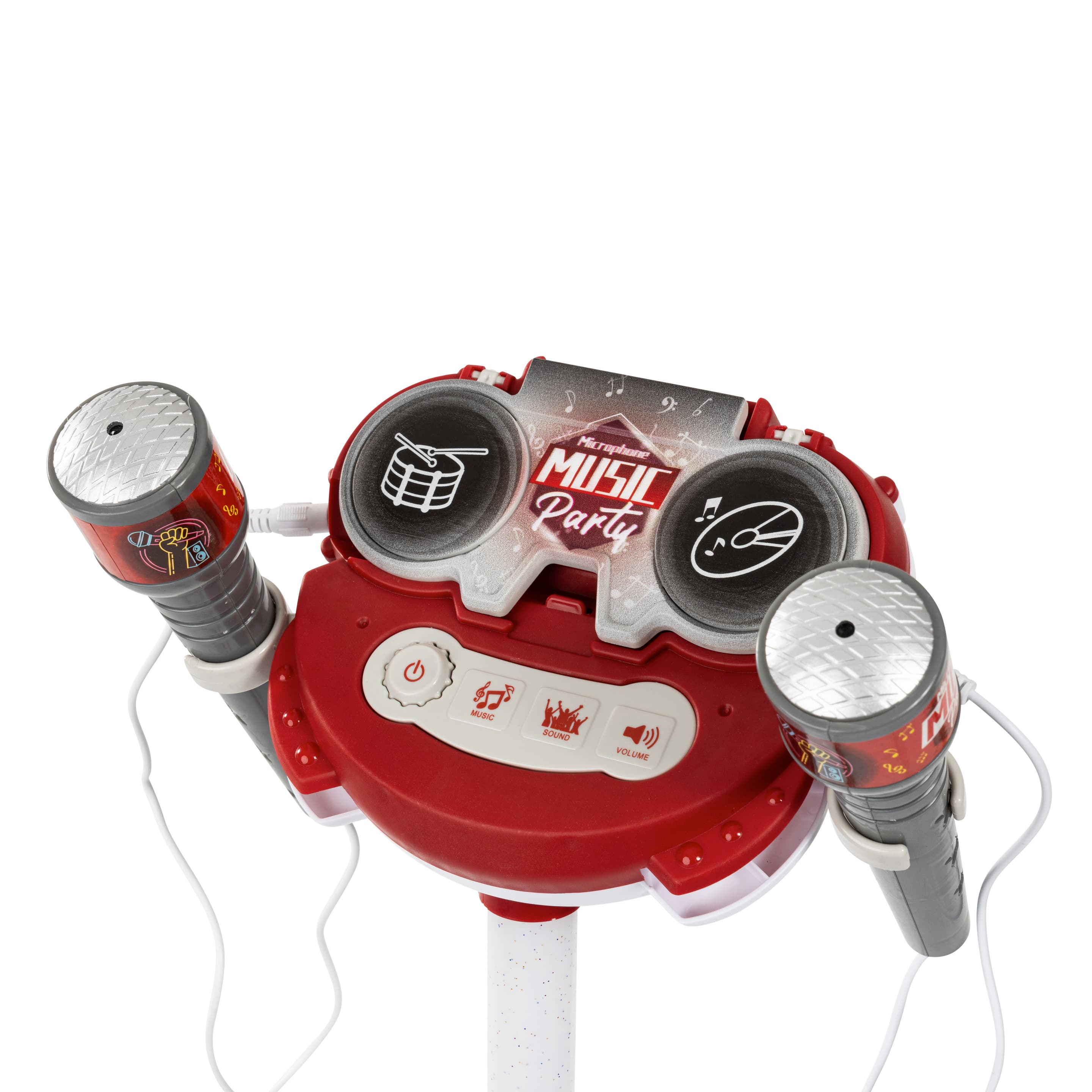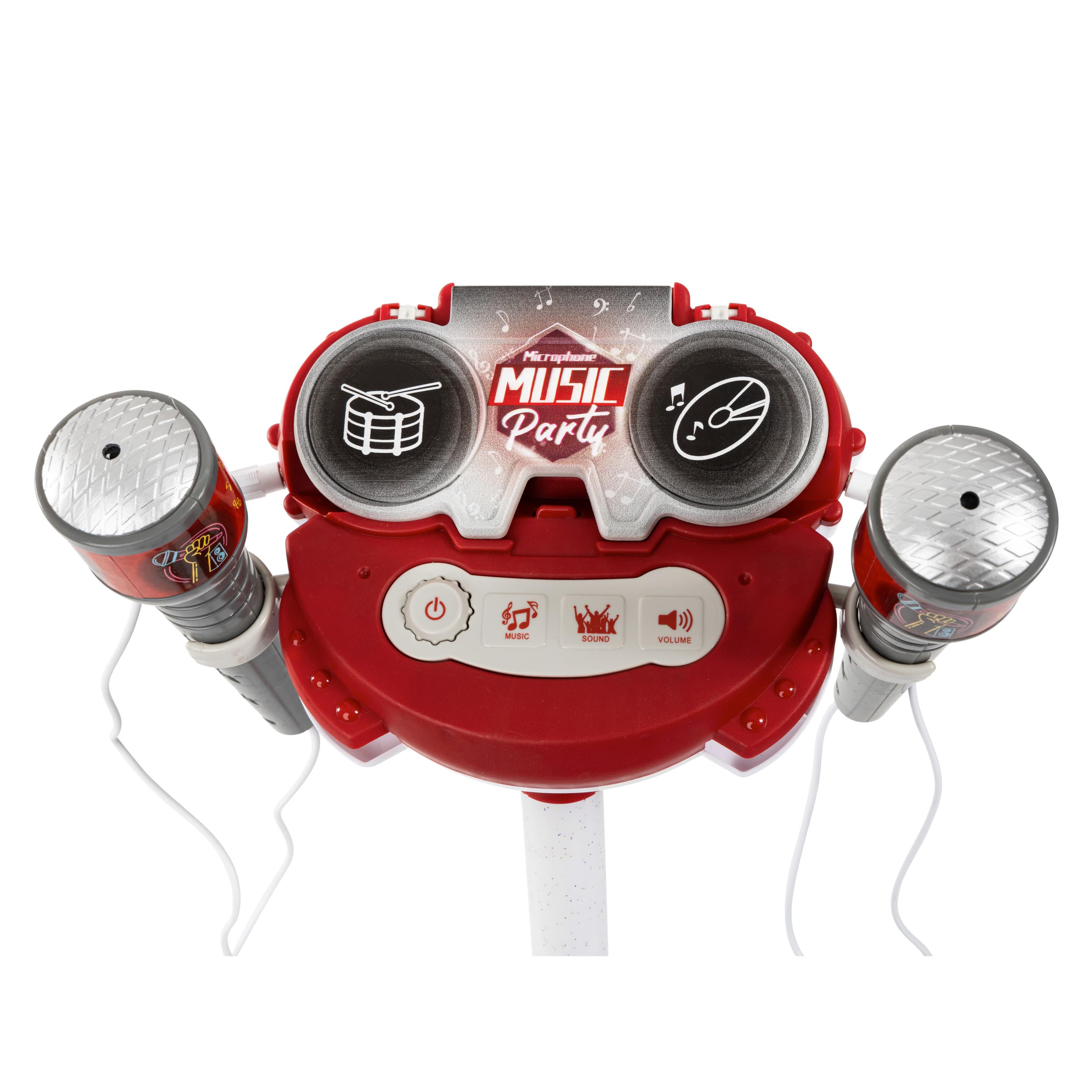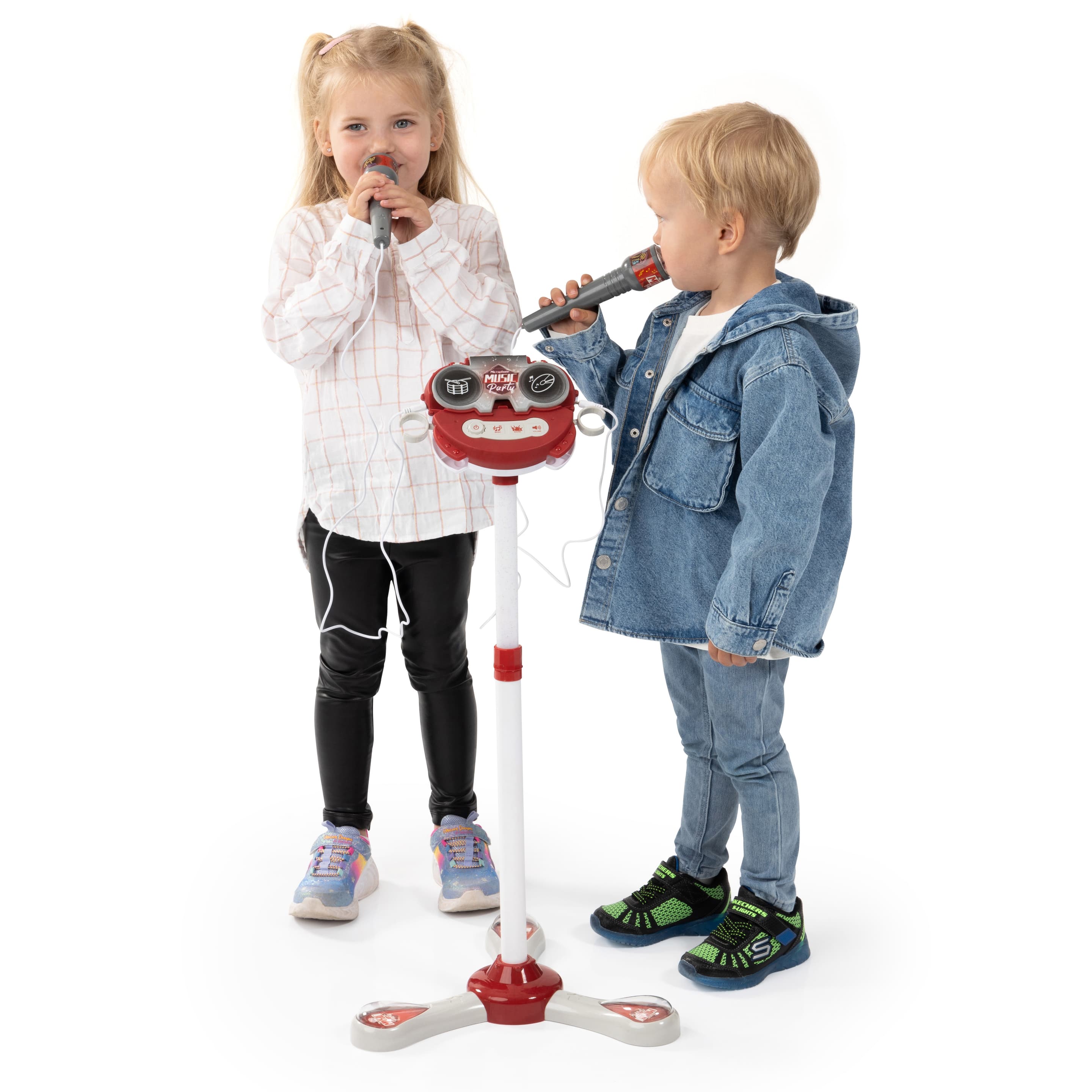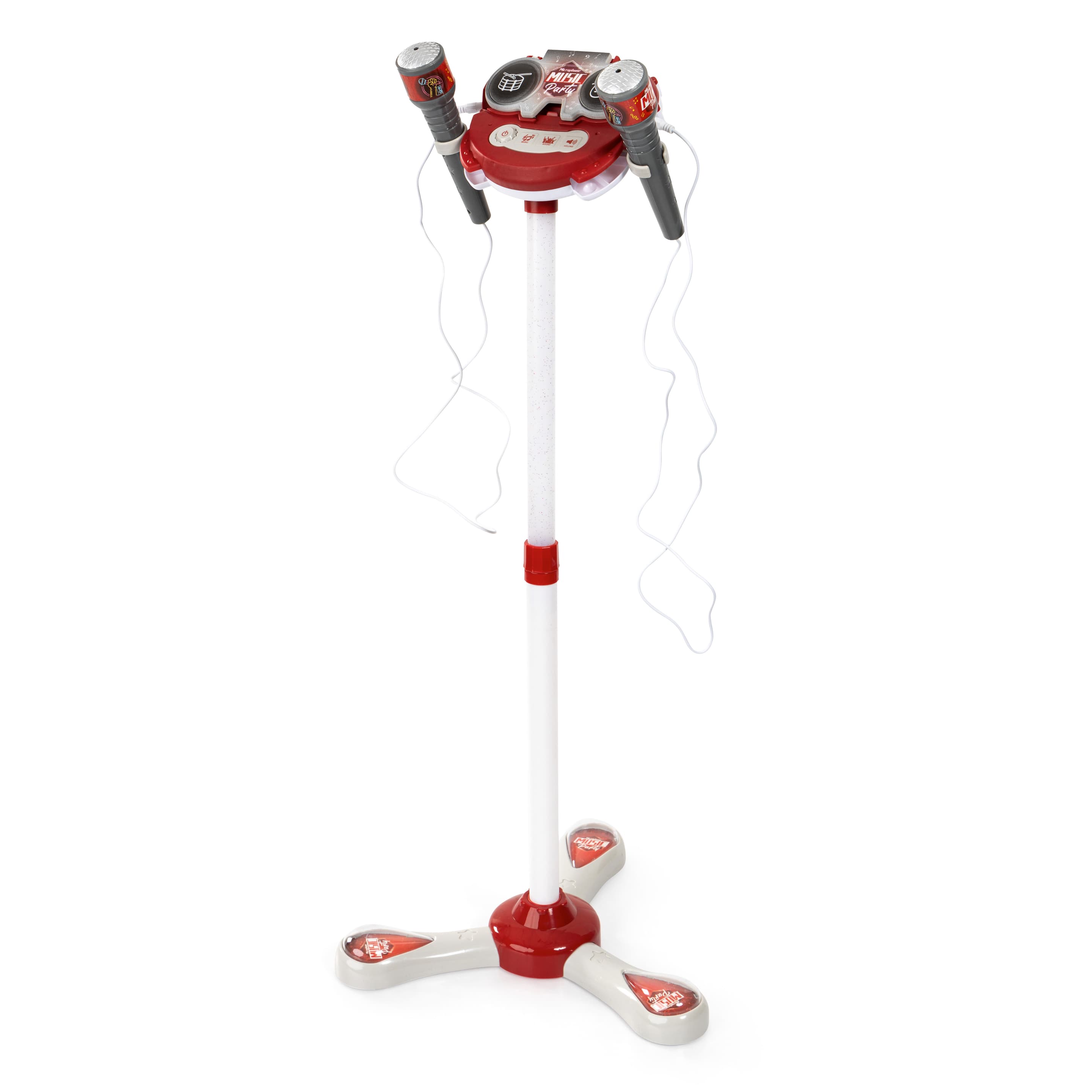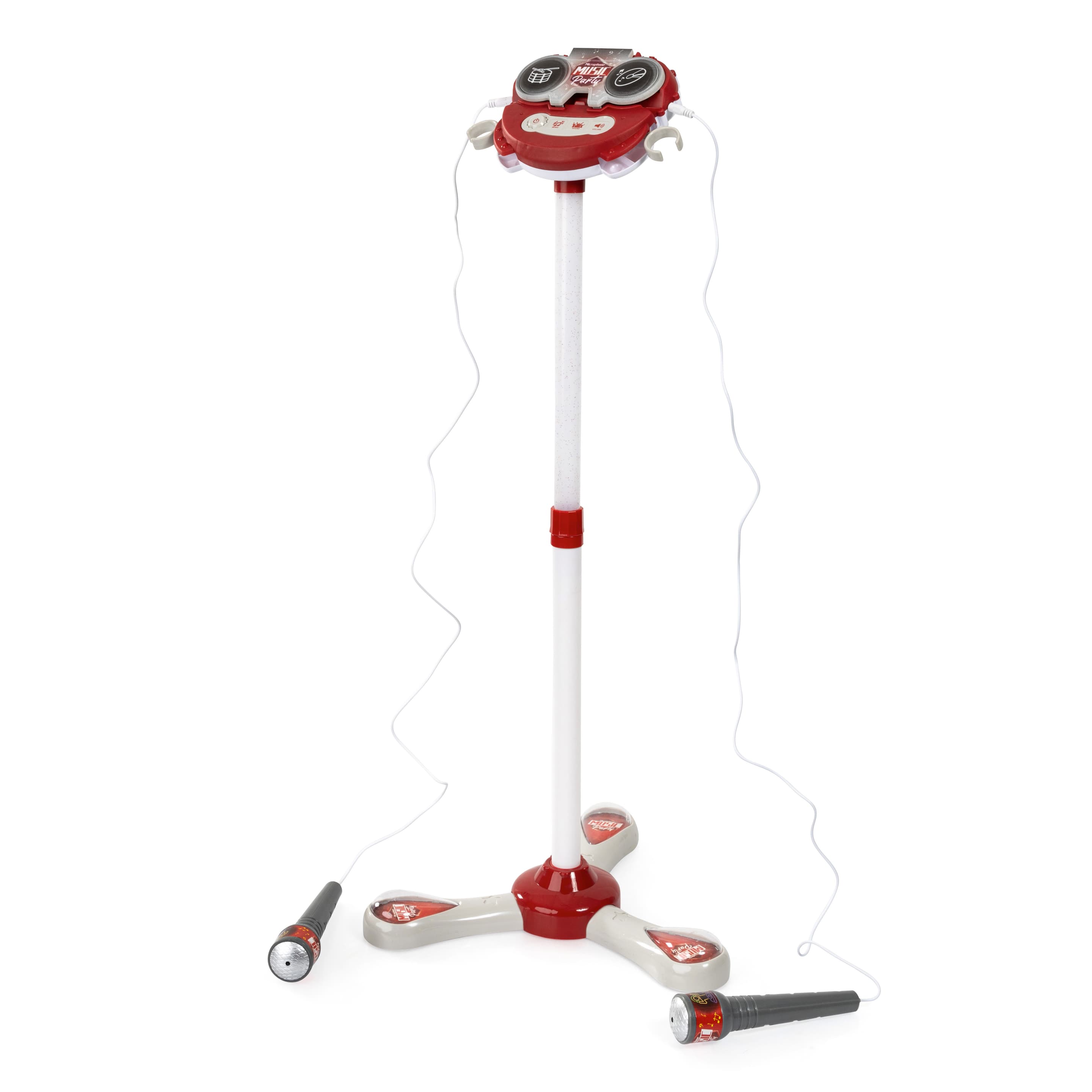 Dieses aufregende Kinder-Karaoke-Set bietet zwei Mikrofone sowie beeindruckende Licht- und Soundeffekte. Perfekt für kleine Musikbegeisterte Kinder, die gleichzeitig singen und tanzen wollen. Spielen Sie Musik direkt von Ihrem Smartphone ab und lassen Sie die Kinder dazu performen. Das Set beinhaltet ein Verbindungskabel (3,5 mm Klinke) für eine einfache Verbindung. Der Steuertisch unterstützt Smartphones und verfügt über Effekttasten für Kickdrums, Becken, Applaus und Demomusik. Damit können die Kinder ihrer Performance eine besondere Note verleihen und das Publikum begeistern. Der Ständer ist höhenverstellbar und mit einem 3-Fuß-Untergestell ausgestattet, um den unterschiedlichen Bedürfnissen der Kinder gerecht zu werden und für sicheren Halt zu sorgen. Dieses Kinder-Karaoke-Set bietet alles, was junge Talente für eine großartige Show brauchen! Perfekt für Geburtstage, Partys und jeden Tag, an dem Musik im Mittelpunkt steht.