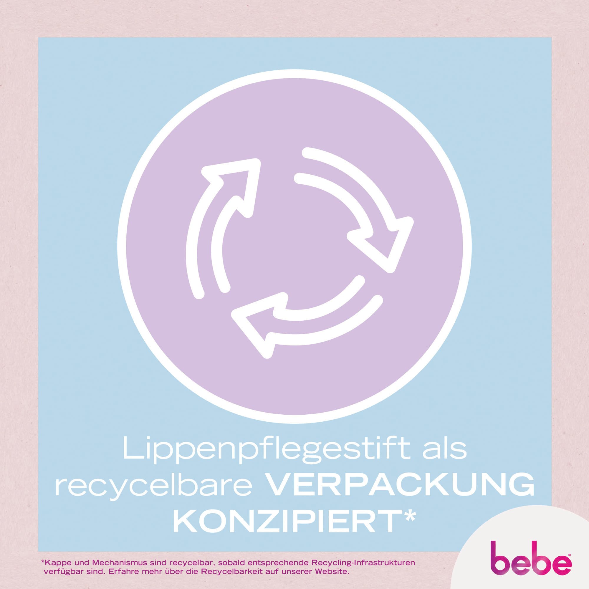 - Pflegestift für die Lippen als recycelbare Verpackung konzipiert– Die Kappe und der Mechanismus sind recycelbar, sobald entsprechende Recycling-Infrastrukturen verfügbar sind. Erfahre mehrüber die Recycelbarkeit auf unserer Website.