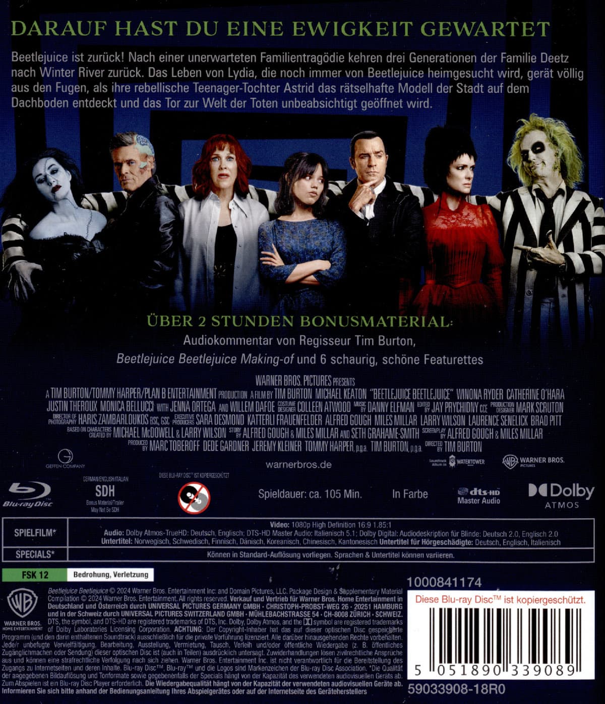 Zusatzinfos / Bonusmaterial beim Film dabeiÜber 2 Stunden Bonusmaterial: Audiokommentar von Regisseur Tim Burton,"Beetlejuice Beetlejuice" Making of und 6 schaurig, schöne Featurettes