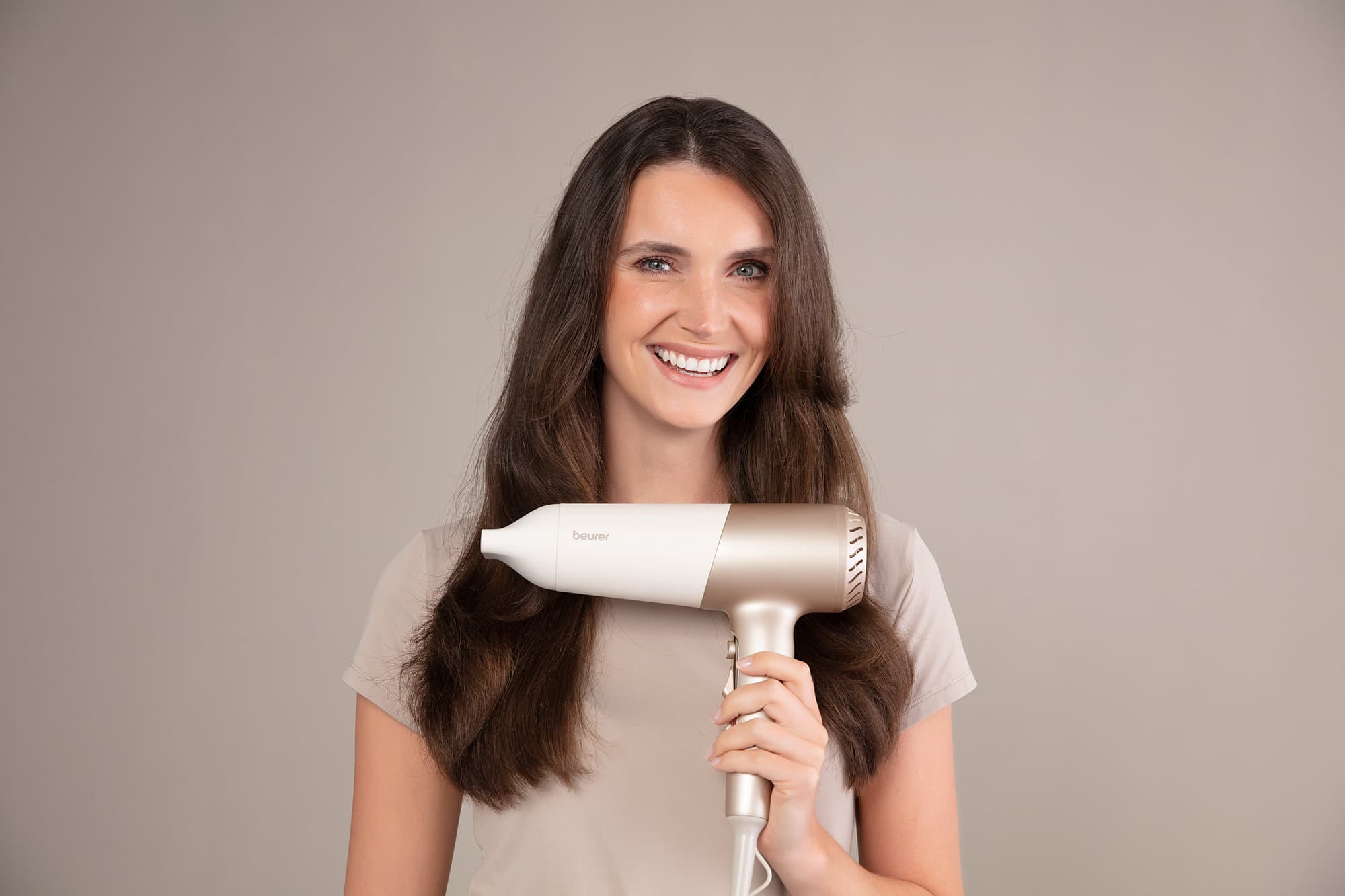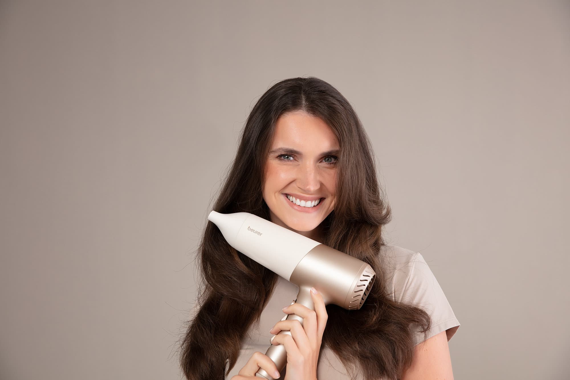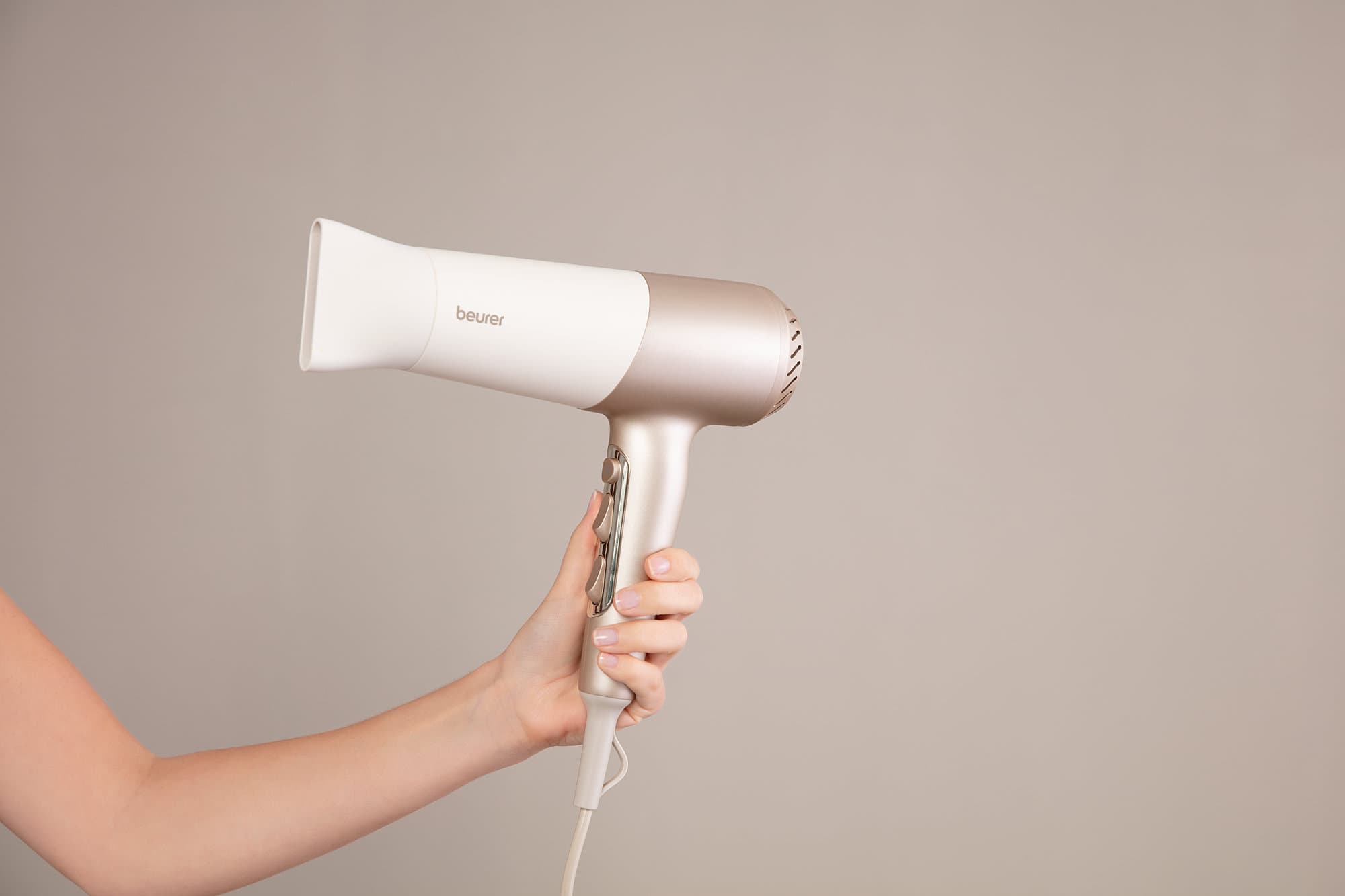 Der Beurer Haartrockner HC 70 überzeugt durch sein leichtes, ergonomisches Design und einen leistungsstarken DC‑Motor für besonders schnelles Trocknen. Dank integrierter Ionenfunktion werden die Haare seidig glänzend und statikfrei. Drei flexible Temperatur‑ und zwei Gebläsestufen sowie eine arretierbare Kaltlufttaste ermöglichen individuelles Styling - die Kaltluft fixiert Frisuren zuverlässig. Für die Sicherheit sorgt ein automatischer Überhitzungsschutz, der das Gerät bei Bedarf abschaltet, während der abnehmbare Sicherheitsfilter die Reinigung erleichtert. Zwei Aufsätze, ein schmaler Profidüse und ein Volumendiffusor, bieten vielseitige Stylingoptionen. Eine praktische Aufhängeöse erleichtert die Aufbewahrung, und eine hitzebeständige Tasche ist ebenfalls enthalten – perfekt für Reisen oder platzsparendes Verstauen.
