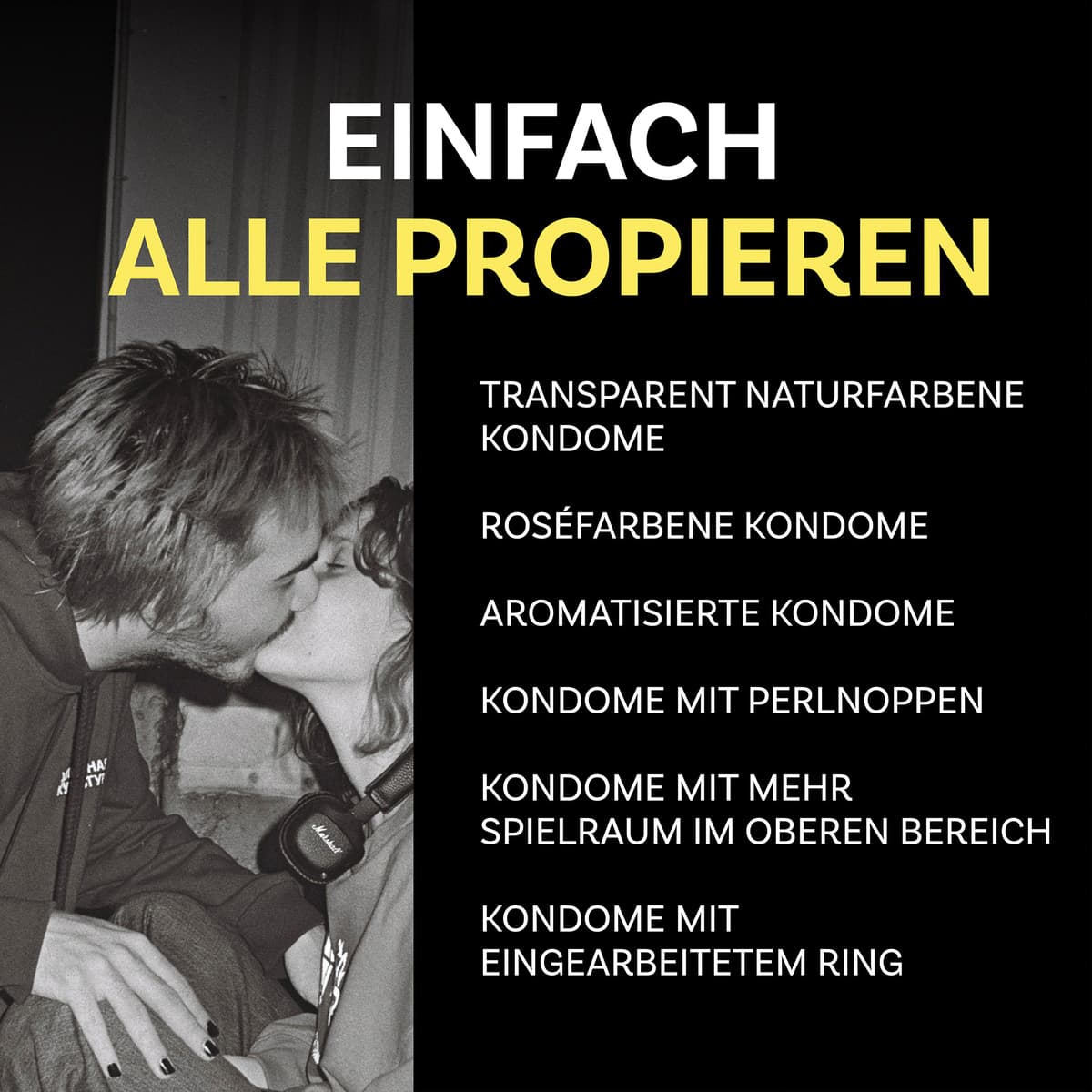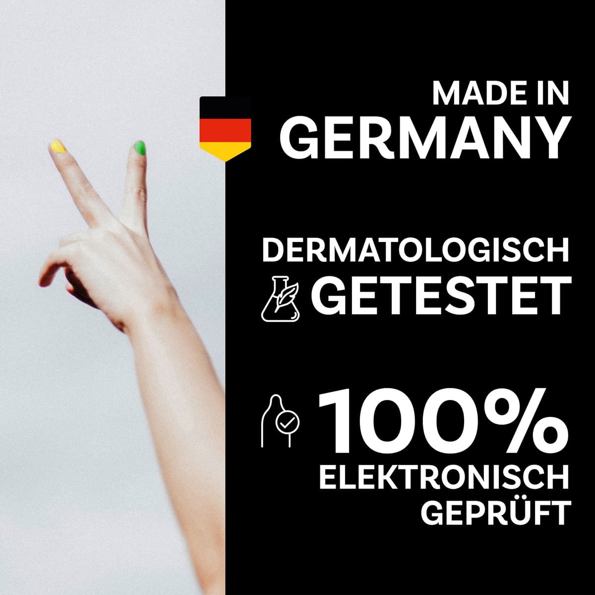 | Anwendungshinweis | Bitte lesen Sie die beiliegende Gebrauchsanweisung sorgfältig, insbesondere bei analer Verwendung der Kondome! |
