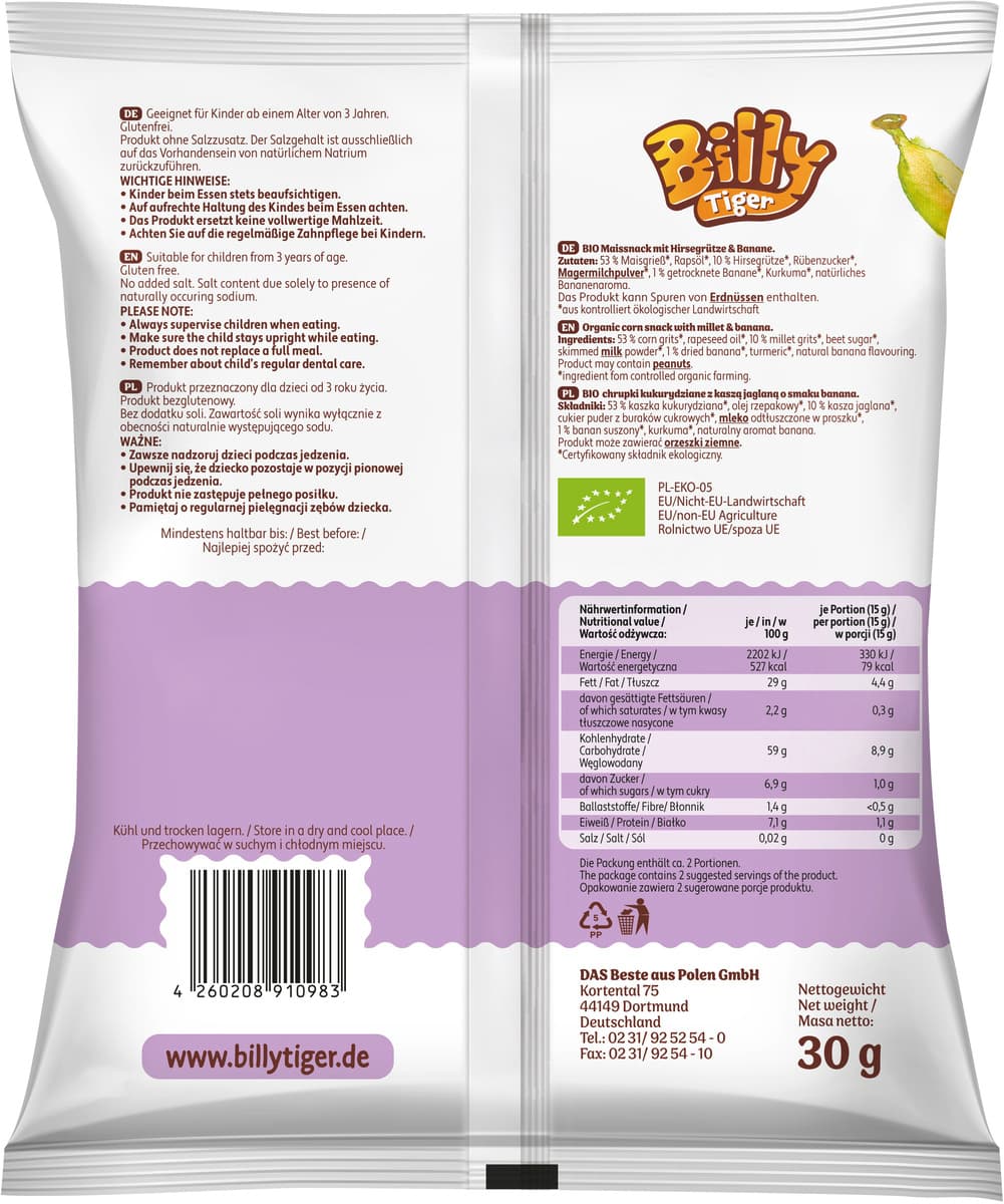 Billy Tiger BIO Mini Maisstangen mit Hirse und Banane