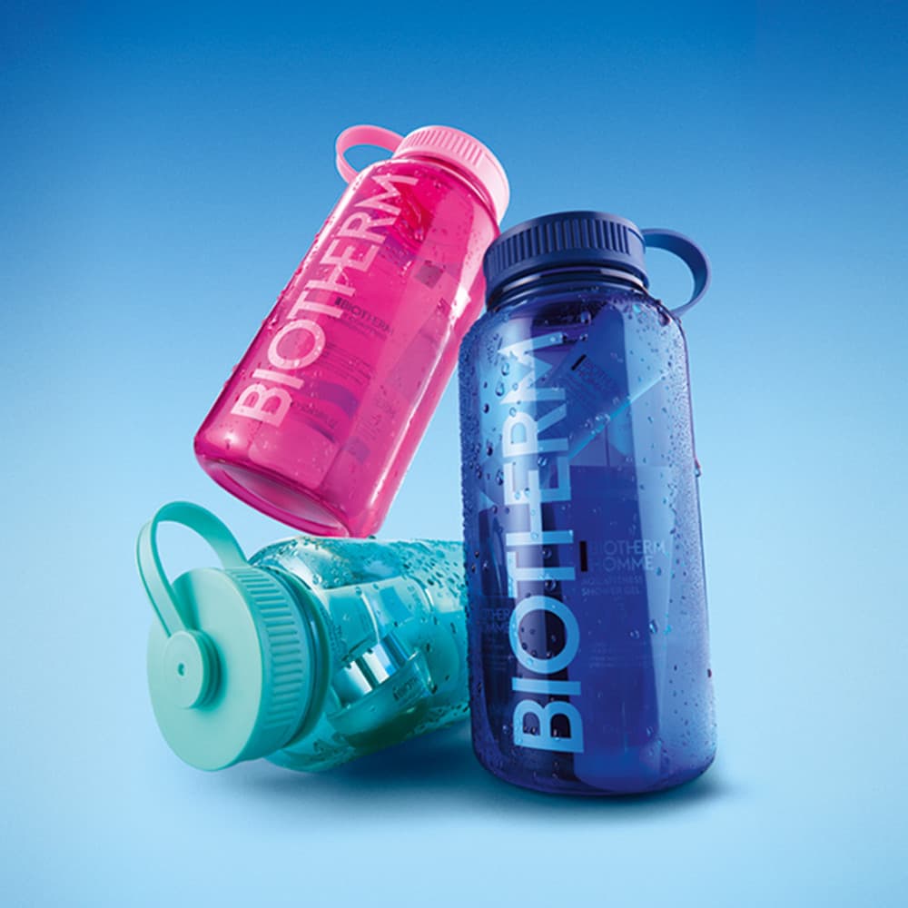 Haut- & Körperpflege Essentials für unterwegs - in der praktischen, wiederverwendbaren pinken Sportflasche von Biotherm.Vier Feuchtigkeitspflege-Essentials für Gesicht & Körper in perfekter Reisegröße, die Aquasource Hydra Barrier Routine für unterwegs - für eine stärkere Hautbarriere in 1h & geschmeidigere Haut in 5 Tagen.