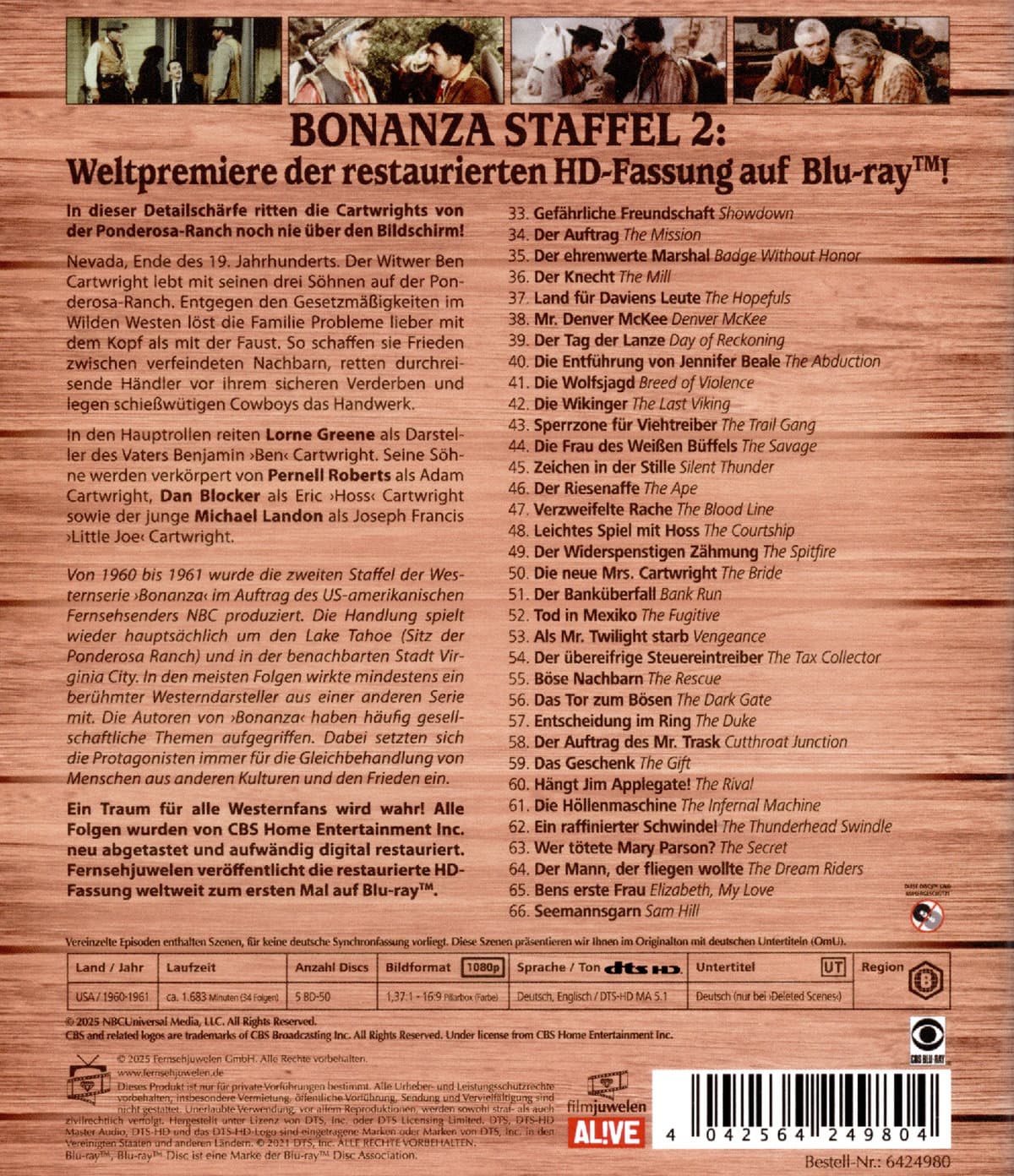 Der verwitwete Rinderzüchter Ben Cartwright lebt am Ende des 19. Jahrhunderts mit seinen drei Söhnen auf der Ponderosa-Ranch in Nevada. Eigentlich lösen Männer dort Konflikte mit ihrem Colt im Standoff. Nicht so die Familie Cartwright: Mit viel Raffinesse und einer gehörigen Portion Moral erinnern die vier Männer ihr Gegenüber daran, wie man mit dem Kopf statt der Faust Probleme beseitigt. Hier rauchen die Colts nur, wenn es sein muss. So schaffen sie Frieden zwischen verfeindeten Nachbarn, retten durchreisende Händler vor ihrem sicheren Verderben und legen schießwütigen Cowboys das Handwerk.
