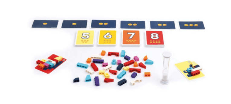 Inhalt: 48 LEGO®-Steine, 92 Modellkarten, 20 Herausforderungskarten, Sanduhr, Regelheft