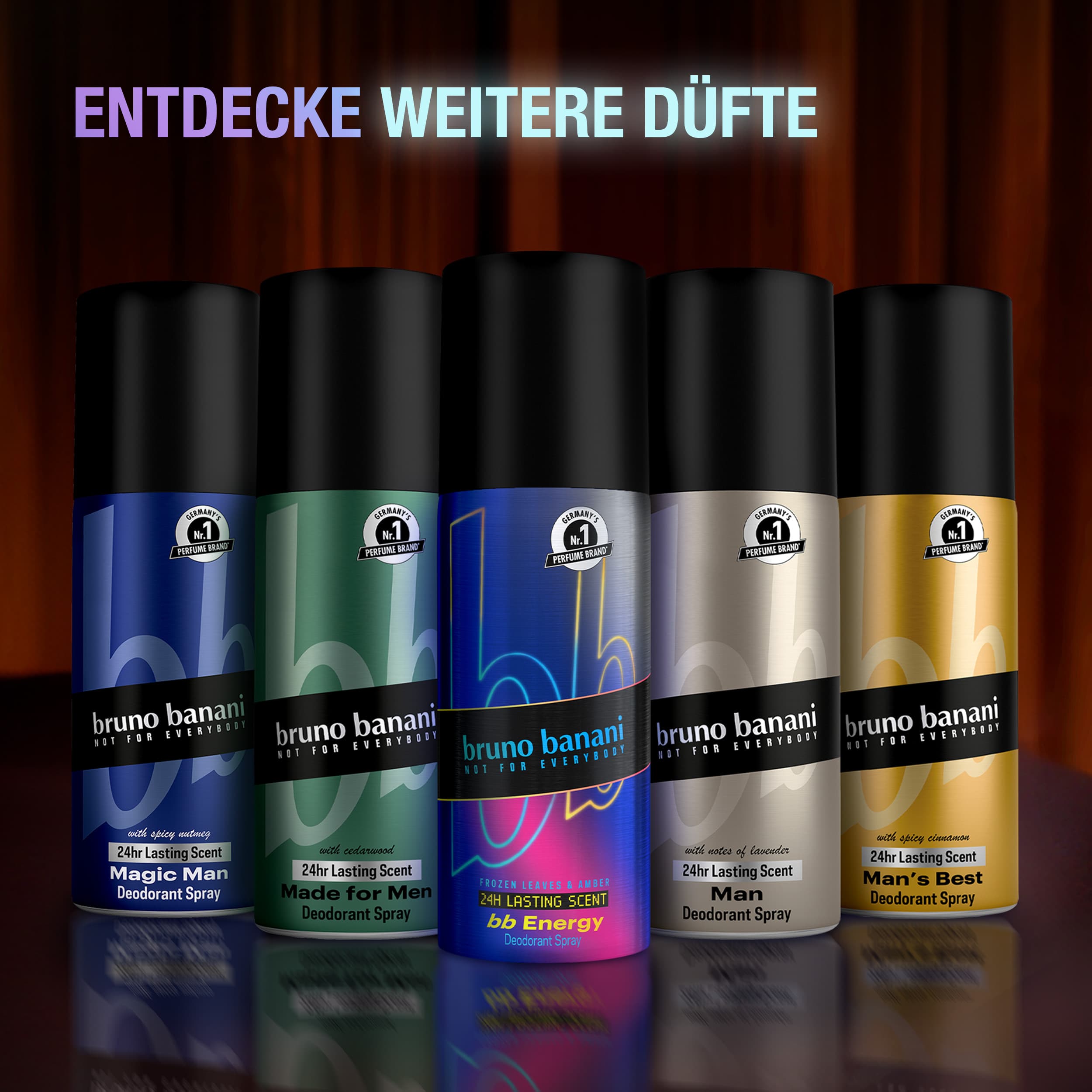 bruno banani bb Energy für Männer ist eine ultramoderne Interpretation des ikonischen bruno banani Man Signature Parfüms, das Männern seit 25 Jahren Anziehungskraft verleiht. Als raffinierter Neo-Fougère-Duft vereint das bb Energy Deodorant Body Spray erfrischende Akkorde und würzig-holzige Noten. Die langanhaltende Duftkomposition eröffnet mit einem erfrischenden Akkord aus gefrorenen Blättern, Noten von Lavandin, Iris und der holzig-würzigen Note von Weihrauchessenz. Im Herzen entfaltet sich ein lebendiger Mix aus grünem Ananas-Akkord, Bergamotte und Kardamom. In der Tiefe ist der Duft geprägt durch eine warme Basis aus Tonkabohne, Zedernholz und trockenen Ambra-Noten. Das Deodorant Body Spray bietet ein intensives Dufterlebnis mit langanhaltendem Deo-Schutz. Die vegane Formel ist dermatologisch getestet.