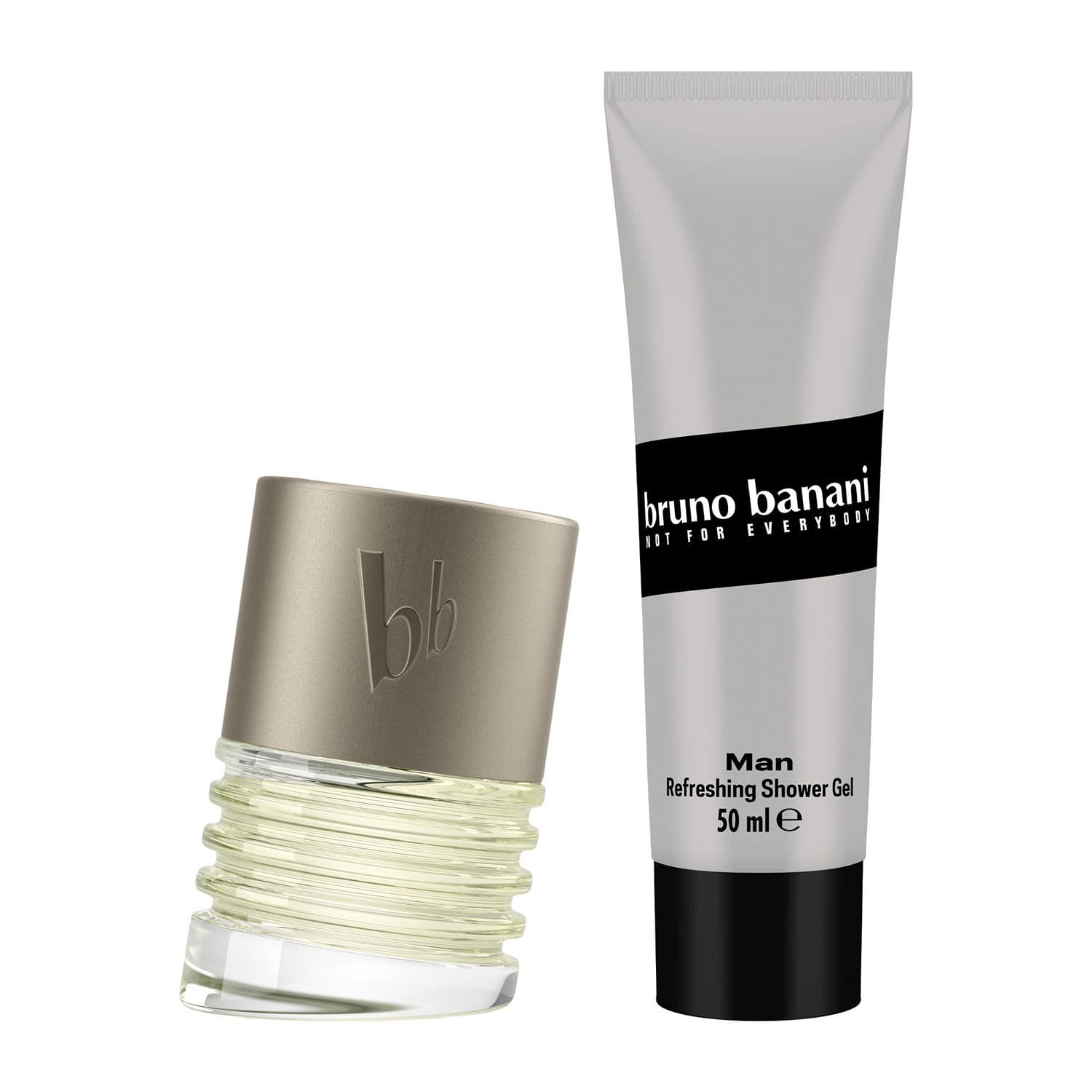 Entdecken Sie das bruno banani Man Geschenkset, eine 2-teilige Geschenkpackung, die ein klassisches maskulines Eau de Toilette und ein belebendes Duschgel für echte Lebemänner enthält. Die kühle Frische von grünem Basilikum verschmilzt mit dem aromatischen Duft von Lavendel und süß-würzigem Sternanis. Die süße, blumige Leichtigkeit von Thymian und Heliotrop wird von der Wärme von Vanille und exotischem Holz ausgeglichen, das dem Herrenduft einen Hauch maskuliner Raffinesse verleiht. Das bruno banani Man Eau de Toilette bietet einen unkonventionellen Duft für souveräne, selbstsichere Männer, die Zeit haben, sich über die erheiternden Momente des Lebens zu amüsieren und über sich selbst zu lachen. Dieses in einer 100% plastikfreien Faltschachtel verpackte Set ist ein wunderbares Weihnachtsgeschenk für Männer oder ideal, um sich selbst etwas zu gönnen. Dieses Geschenkset enthält en Eau de Toilette 30ml, sowie ein Duschgel 50ml.