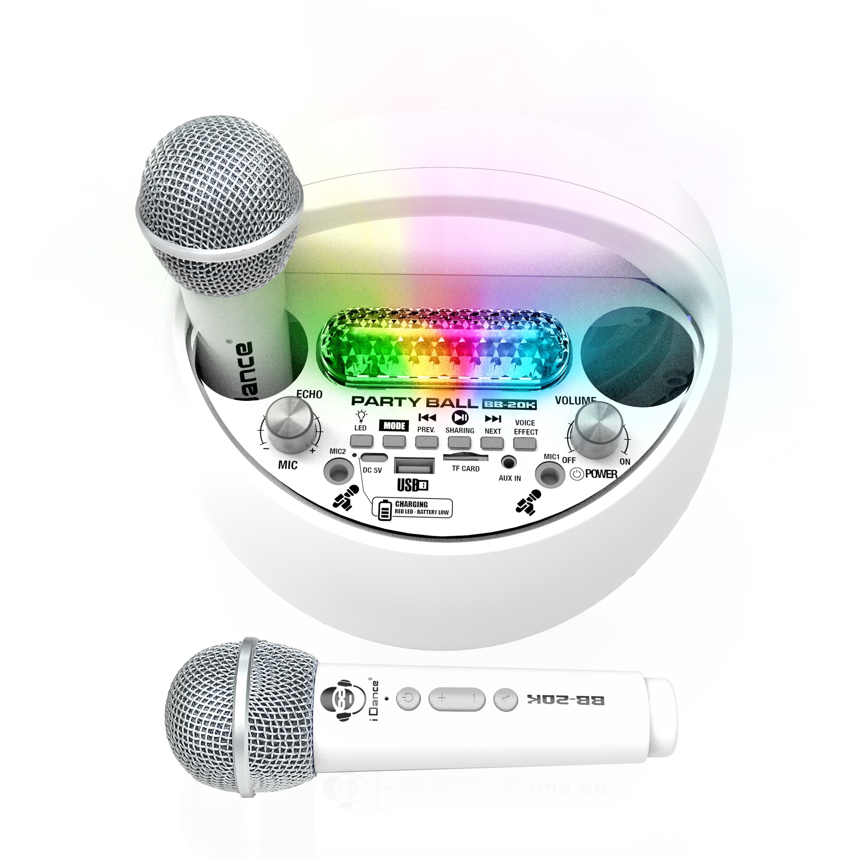 | Besonderheiten | Einfache Verbindung mit lhren Laptops, Smartphones und Tablets 5 verschiedene Stimmen fur viel SpaB 2 Mikrofoneingänge mit eingebauter Echo-Steuerung und Mixer Discobeleuchtung- projiziert bunte, wirbelnde Lichtmuster auf Wande und Decken |