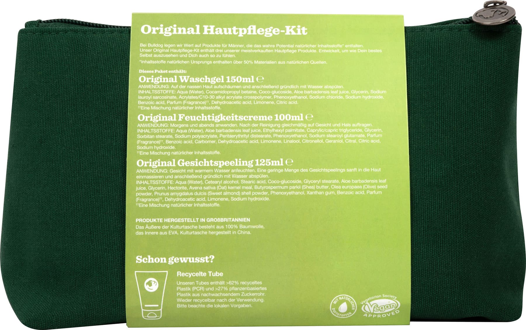 Bulldog Hautpflege Kit für den Mann mit Original Feuchtigkeitscreme 100ml, Original Waschgel 150ml, Original Peeling 125ml und Kulturtasche