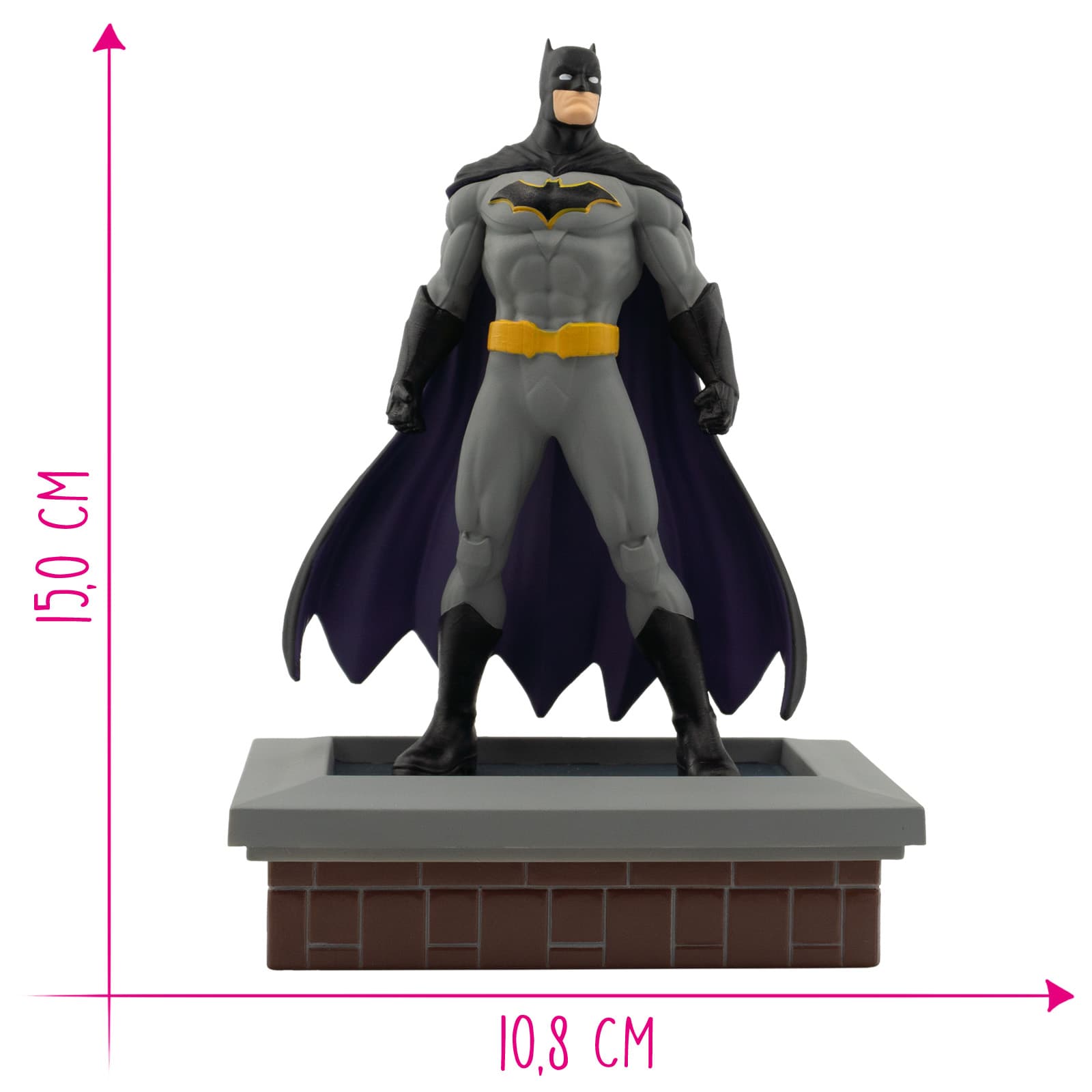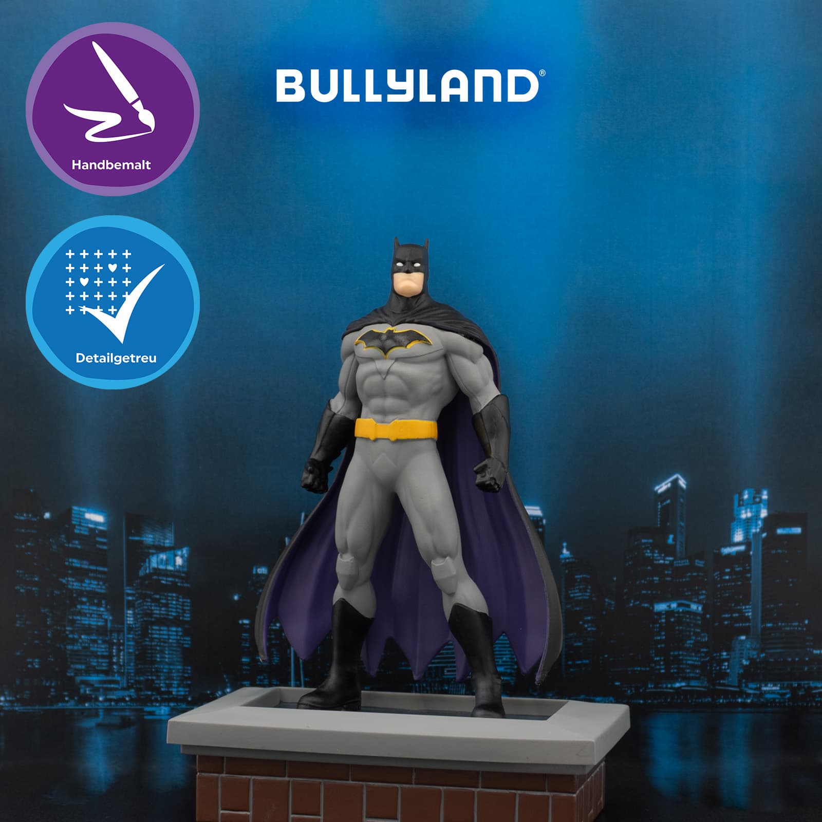 SPIELSPASS ZUM SAMMELN. Unsere Spielfiguren eignen sich für Groß und Klein. Wenn über Gotham die Nacht hereinbricht, sorgt Bruce Wayne als Batman dafür, dass das Böse nicht überhandnimmt. Sein hochtechnologischer Anzug verleiht ihm Superkräfte. Tauchen Sie mit Batman ein, in die faszinierende Welt des DC Comics Superhelden UniversumDie Bullyland DC Batman Figur bringt den legendären Dunklen Ritter aus Gotham City direkt ins Kinderzimmer oder in die Sammlervitrine. Mit einer Höhe von ca. 15 cm zeigt die detailreich und liebevoll handbemalte Spielfigur Batman in seiner ikonischen Optik mit Umhang und entschlossenem Blick. Gefertigt aus hochwertigem Kunststoff und frei von PVC sowie Weichmachern überzeugt die Figur durch ihre stabile Verarbeitung und sichere Haptik. Ob zum fantasievollen Spielen, Sammeln oder als Geschenk für kleine und große DC‑Fans – diese Batman Figur vereint Spielspaß, Qualität und authentisches Design. Ideal geeignet für Kinder ab 3 Jahren sowie für Sammler und Liebhaber des DC‑Universums.