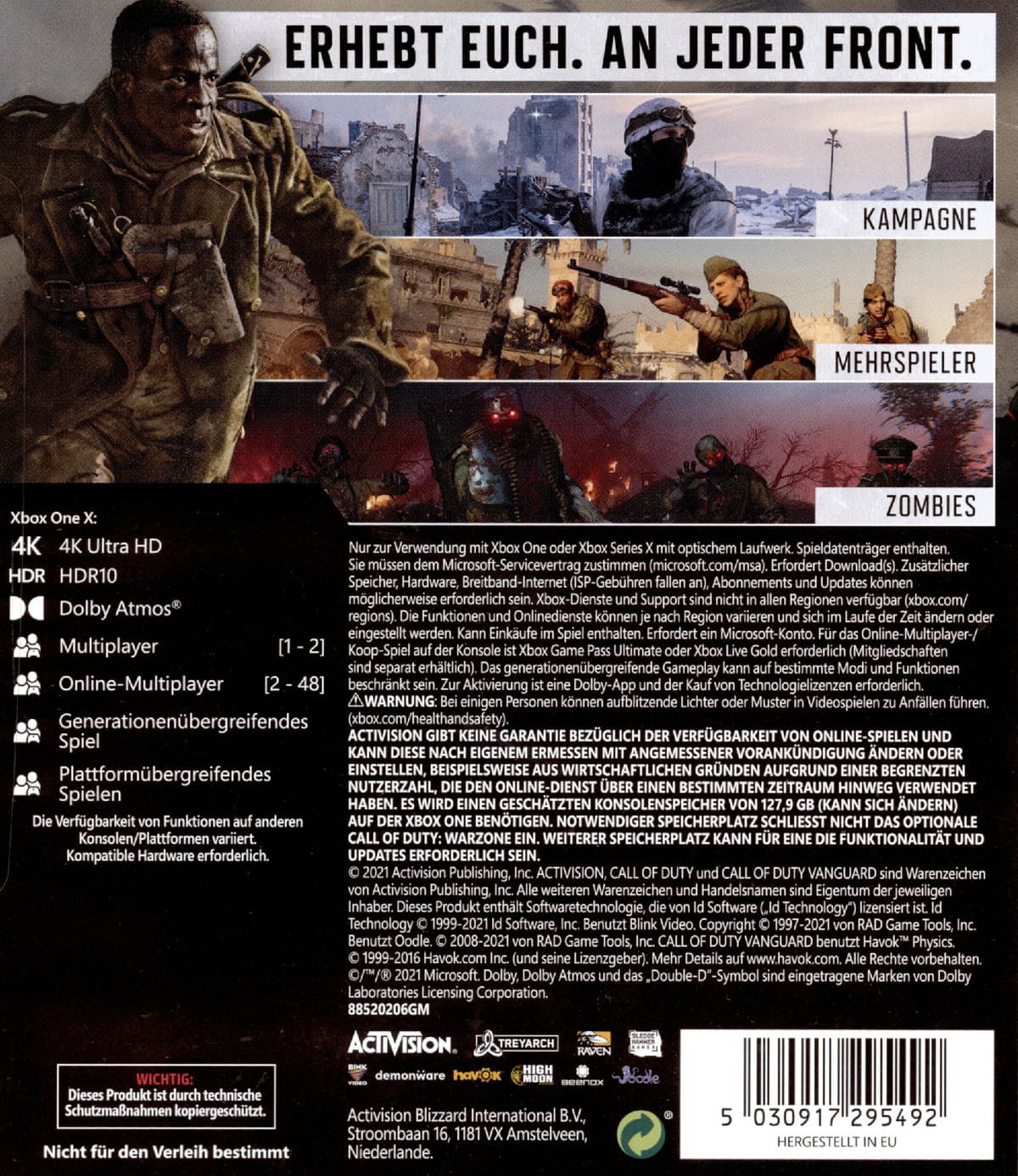 Erlebt Kämpfe aus dem Zweiten Weltkrieg wie nie zuvor. Werdet Zeugen der Gründung der Spezialeinheit, wenn ihr eine entscheidende Rolle spielt und den Lauf der Geschichte verändern könnt, indem ihr die Einsatzgruppe 1 in einer fesselnden Kampagne auf vier großen Kriegsschauplätzen formiert. Werdet ein Spezialeinheit-Operator in einem innovativen Online-Mehrspieler-Modus mit 20 Karten zum Start. Erlebt Zombies zum ersten Mal in der Reihe in einem Spielerlebnis, das die Universen umspannt. Taucht in ein vollständig integriertes Call of Duty: Warzone-Erlebnis mit einer neuen und riesigen Karte ein. Dies ist das vernetzteste Call of Duty aller Zeiten, alles mit der Call of Duty-Engine der nächsten Generation, die in Modern Warfare eingeführt wurde.