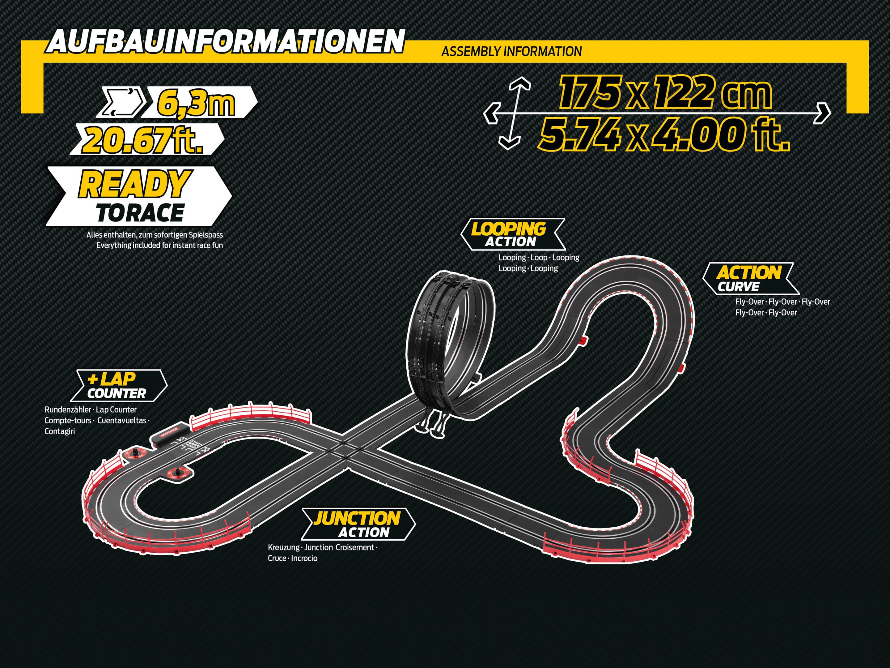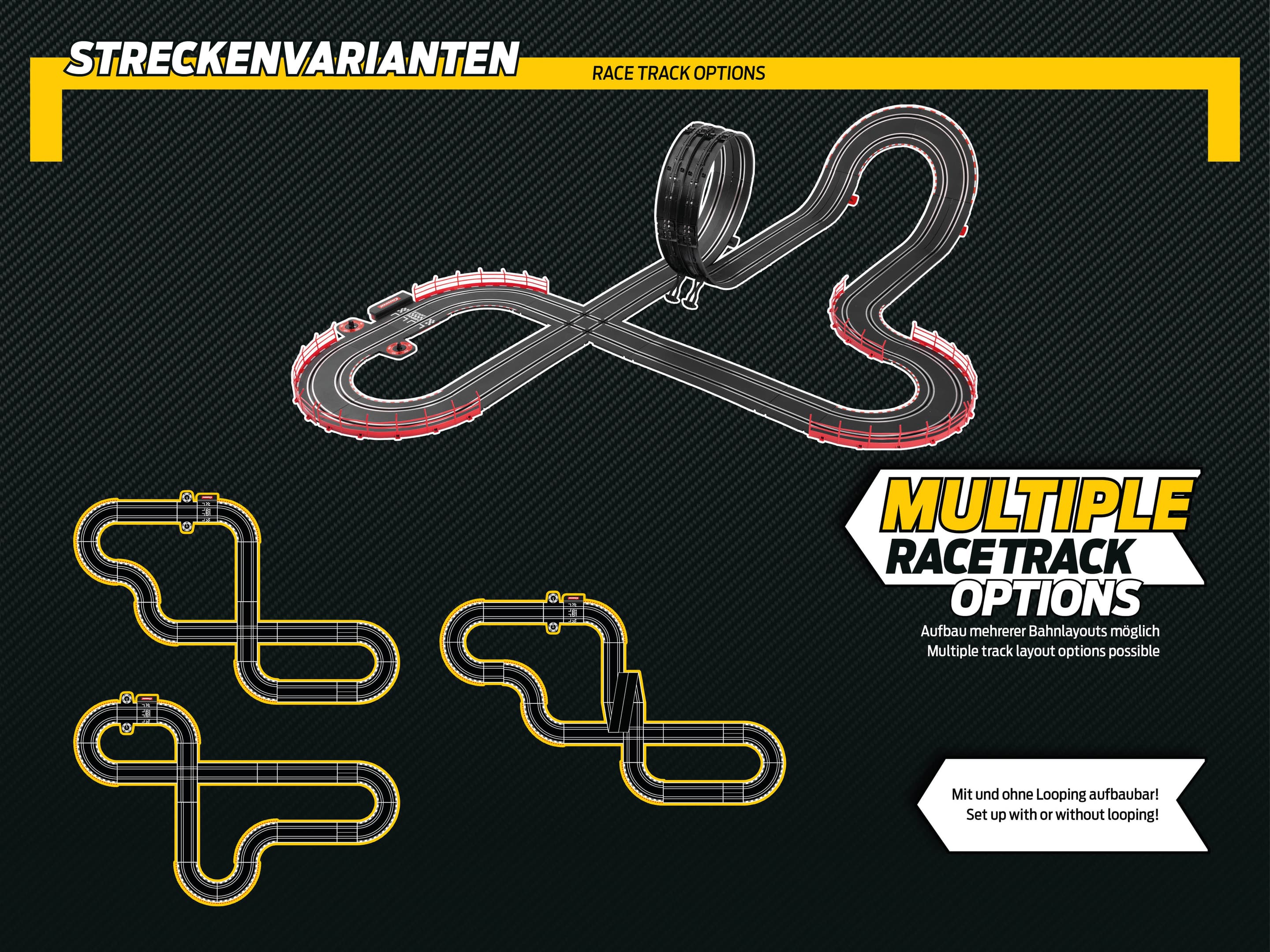 Inhalt: Looping, Fly-Over, Kreuzung, Rundenzähler, Handregler, Leitplanken, Stützen